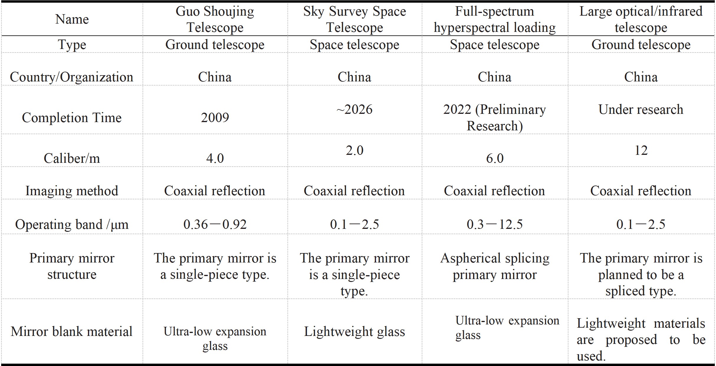 The development of infrared astronomy has been a continuous breakthrough from the ground to space. Since the 1960s, ground-based infrared observation has achieved many important results. Ground-based telescopes collect and focus starlight to detectors. The increased aperture of the telescopes not only improves the light-gathering ability, but also helps to obtain images with higher spatial resolution within the diffraction limit. Building larger telescopes faces multiple challenges in engineering, including physical laws, atmospheric conditions, technical bottlenecks and resource limitations. Even on the ground, the construction of larger telescopes still faces major technical difficulties [24]. In addition, although ground-based telescopes use high-altitude stations to avoid some atmospheric interference, the absorption and radiation of the Earth's atmosphere itself limits observation. In the early days, in order to overcome the limitation of residual atmospheric absorption, the National Aeronautics and Space Administration(NASA) developed the Kuiper Airborne Observatory(1974-1995) [25] and the Sofia Stratospheric Infrared Observatory(2010-2022) [26].