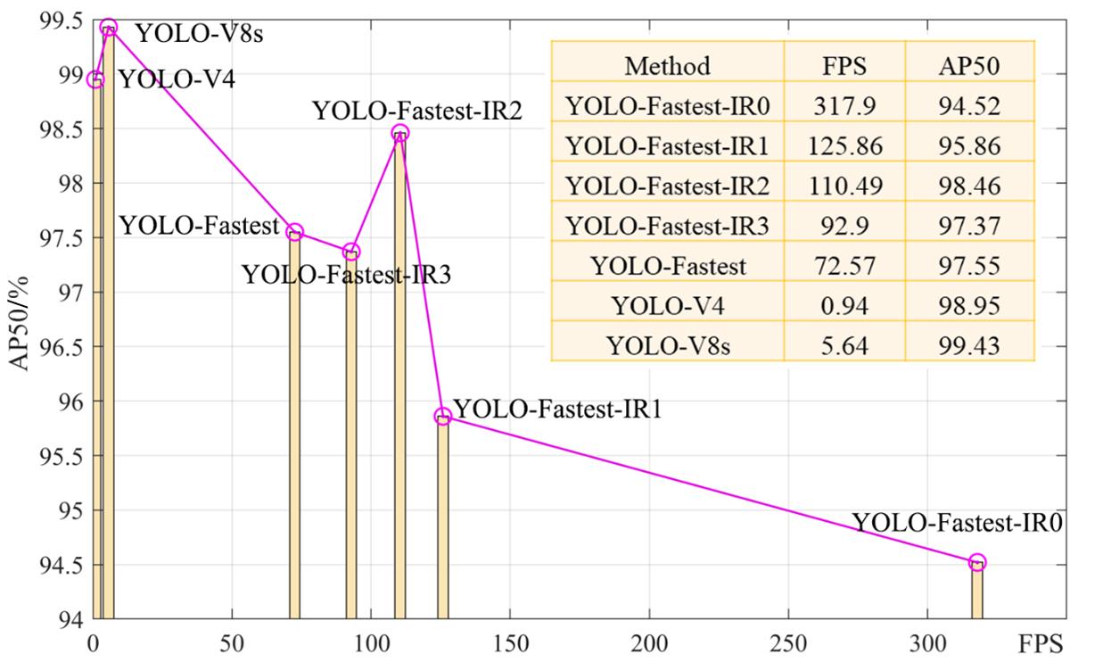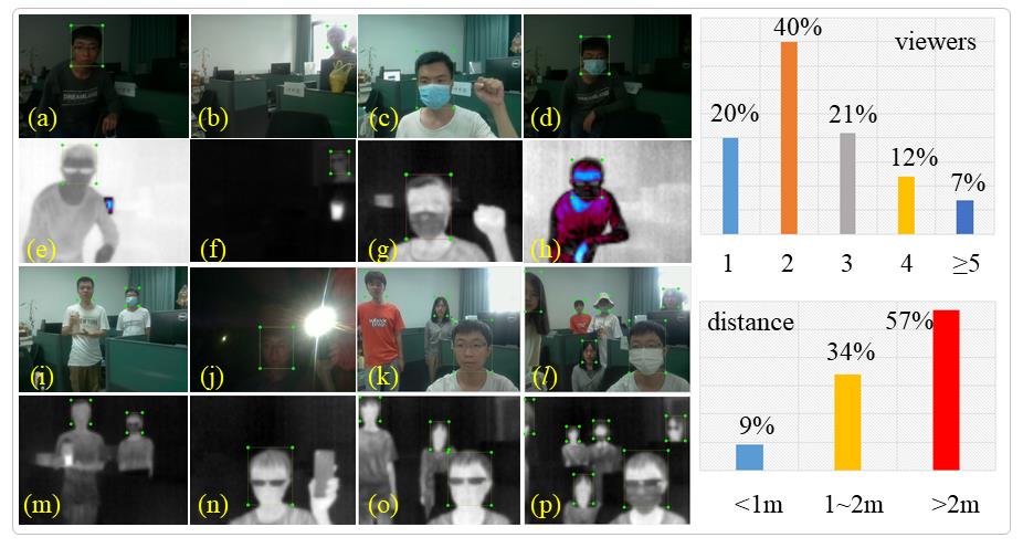 摘要:本文介绍了一种基于ARM CPU的高速鲁棒的双波段热成像测温相机,该测温仪由低分辨率长波红外探测器、数字温湿度的传感器和CMOS传感器组成。针对热红外图像中人脸与背景对比度大的现象,本文探索了一种平衡了人脸检测精度与速度的折衷方案,并提出了一个超型轻量级热红外人脸检测,将之命名为YOLO-Fastest-IR。基于YOLO-Fastest设计了四种不同尺度的热红外人脸检测器YOLO-Fastest-IR0至IR3。为了对4个超轻量级网络训练和测试,本文还设计了一套多用户低分辨率热人脸数据集(RGBT-MLTF),并对四个网络完成了训练。实验表明,轻量级卷积神经网络在热红外人脸检测任务中表现出色。该算法在定位精度和速度上均优于现有的人脸检测算法,且更适宜部署在移动平台或嵌入式设备中。在红外图像(IR)中获取感兴趣区域后,根据热红外人脸检测结果对RGB相机进行引导,实现RGB人脸的精细定位。实验结果表明,YOLO-Fastest-IR在树莓派4B上的帧率高达92.9 FPS,在RGBT-MLTF测试集中人脸定位成功率达97.4%。最终实现了低成本、强鲁棒性和高实时性的测温系统集成,测温精度可达0.3 ℃。