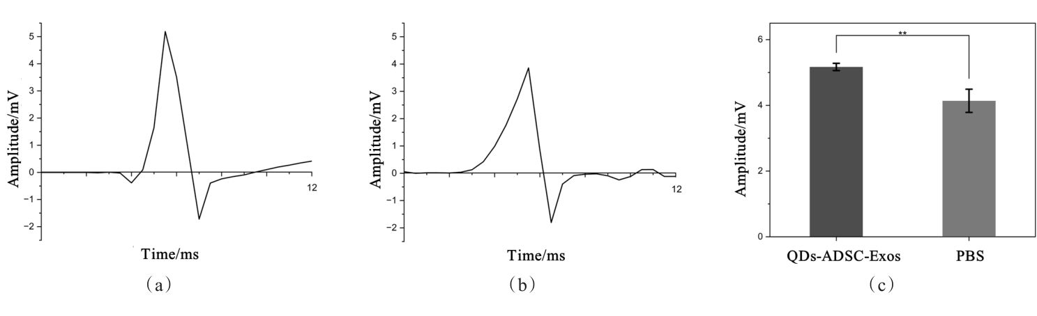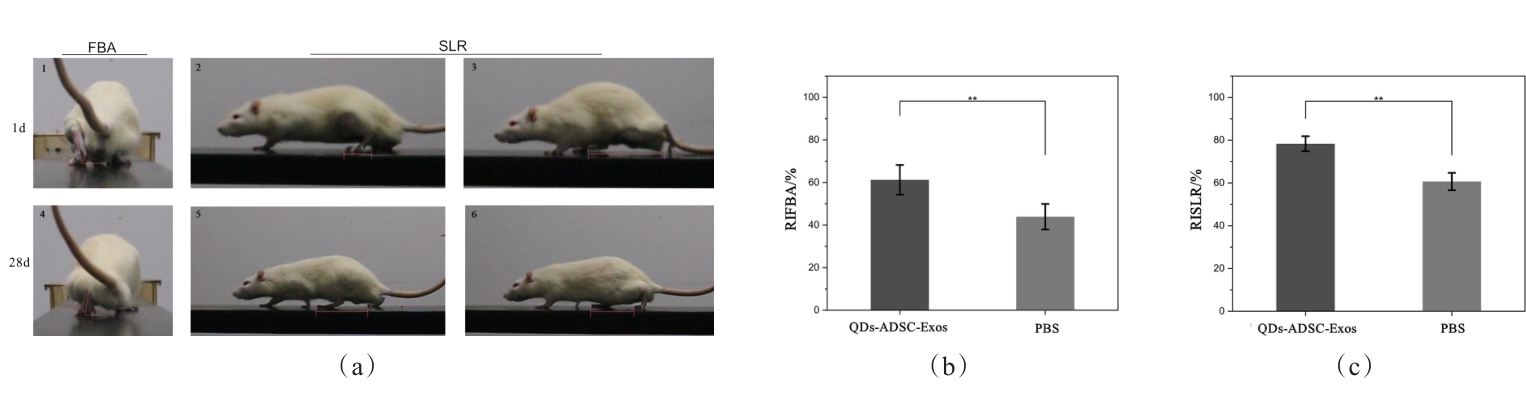摘要:缺血是影响周围神经损伤修复的重要因素,而外泌体被证实具有促血管再生作用。为了进一步研究外泌体治疗伴缺血周围神经损伤的细节过程与疗效,本文利用葡萄糖修饰近红外二区量子点标记脂肪干细胞来源外泌体(QDs-ADSC-Exos),实现外泌体治疗伴缺血周围神经损伤的活体近红外二区(NIR-II)长时程成像。实验结果证实量子点可用于体外无创标记外泌体,QDs-ADSC-Exos在NIR-II区间下显示出高强度荧光信号,在体内具备良好的NIR-II活体成像特性;QDs-ADSC-Exos在伴缺血周围神经损伤中表现为在神经损伤局部的聚集;神经功能学评估果表明,QDs-ADSC-Exos能促进有效神经功能再生。本研究证明外泌体在伴缺血周围神经损伤治疗中的潜力,也发现外泌体治疗伴缺血周围神经损伤的时空变化特征,为了进一步优化外泌体治疗方案提供了客观依据。
