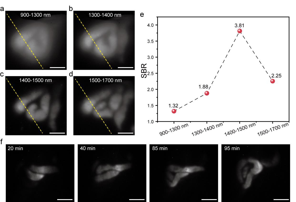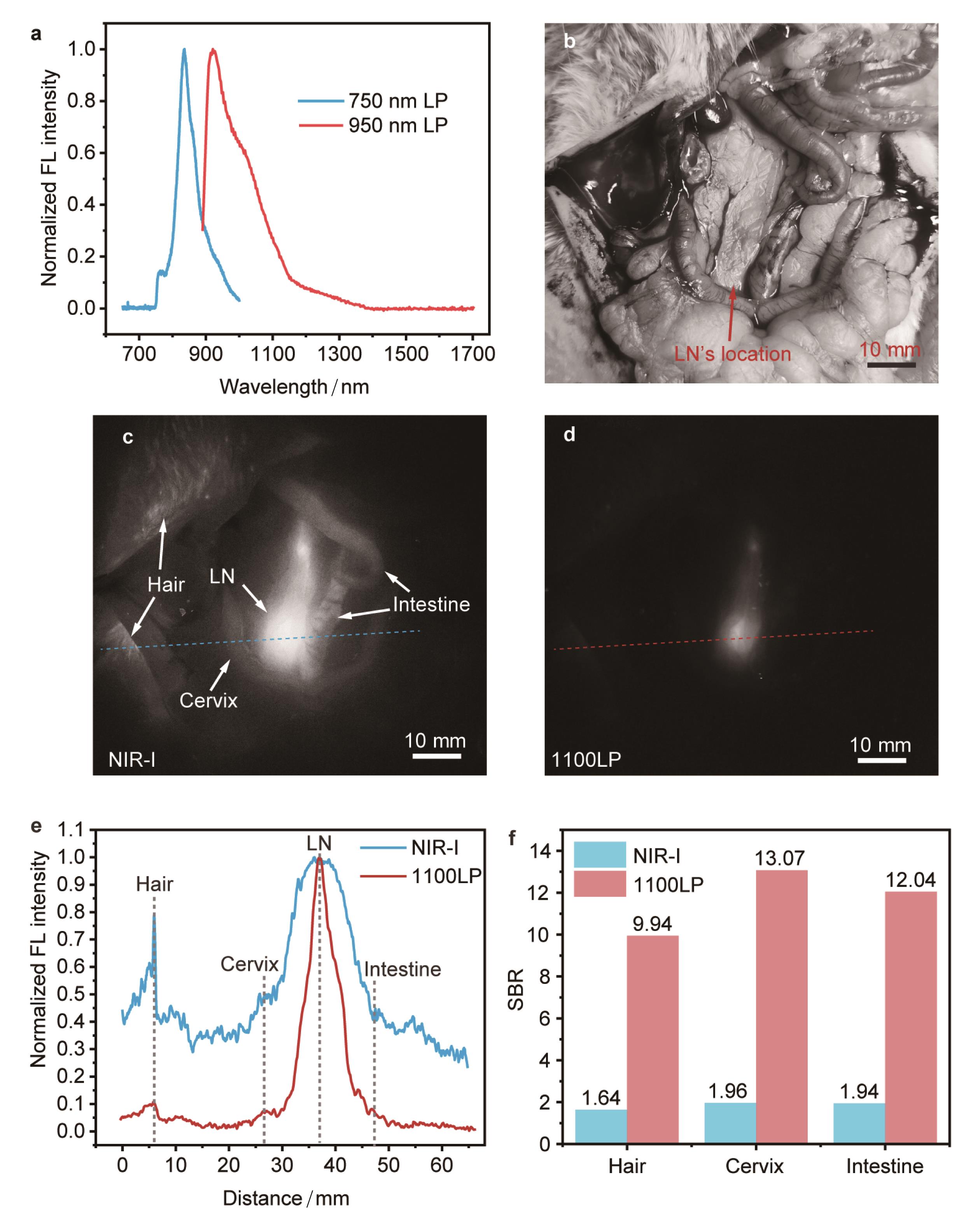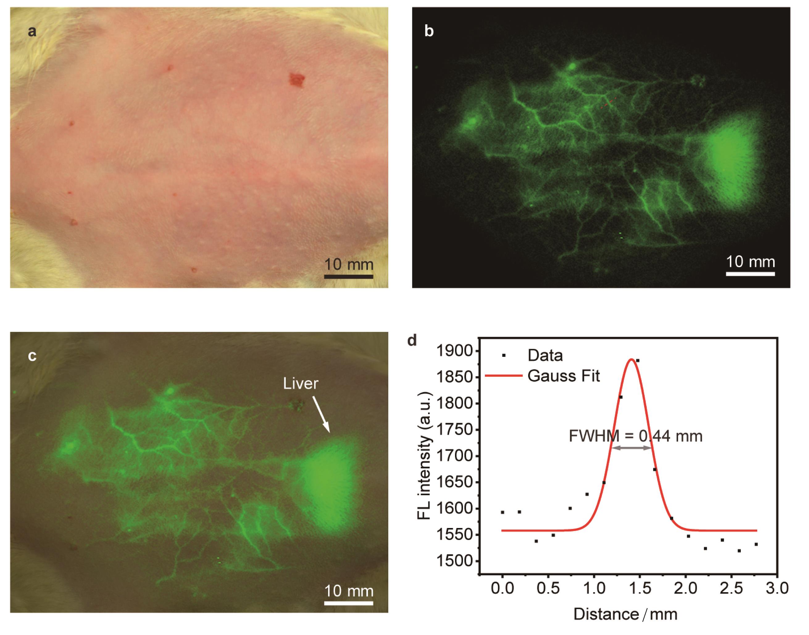 摘要:近红外二区(the second near-infrared window,NIR-II,900~1 880 nm)荧光成像具有信号背景比高、穿透深度大的优势,在生物医学领域具有广泛的应用前景。对NIR-II成像窗口的划分有利于优化成像过程,其中,NIR-IIx(1 400~1 500 nm)成像窗口得益于其独特的水吸收,可以有效抑制散射背景,实现高对比度成像。文章通过仿真模拟和活体实验,系统评估了NIR-IIx窗口的成像潜力。为了更好地推进NIR-IIx荧光成像的临床转化,研究采用美国食品及药物管理局(FDA)批准的有机小分子染料吲哚菁绿(Indocyanine Green,ICG)作为荧光探针,利用其延伸至NIR-II的荧光发射拖尾,实现了高对比度和清晰度的小鼠血管和肠道的NIR-IIx成像。此外,研究还结合同样通过FDA认证的亚甲基蓝(Methylene Blue,MB),成功实现了高质量的NIR-II双通道成像,精准定位小鼠的血管和淋巴结。文章进一步挖掘了NIR-IIx在生物成像上的独特优势和临床应用的潜力,并为NIR-II荧光成像的临床转化提供了重要参考。