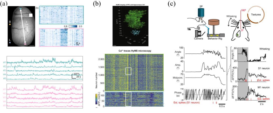 摘要:高时空分辨率的多脑区同步成像是神经科学研究中的关键需求,然而传统多光子显微技术受限于单视场成像模式,难以实现跨脑区的大范围神经活动观测。多视场多光子成像技术通过物镜前/后光路的视场分割策略,结合波长编码、空间分光及时间门控等多维信号解析方法,有效突破了传统技术的时空分辨率限制。该技术可实现毫秒级时间分辨率与微米级空间分辨率的跨脑区同步成像,为揭示皮层间功能耦合、皮层-亚皮层神经环路协同机制以及全脑尺度神经信号传播动力学提供了全新研究范式。未来,通过与内窥成像、自适应光学像差校正、光刺激以及深度学习的图像解析等技术的深度融合,多视场多光子成像将进一步推动神经环路功能架构的精准解析,并在神经退行性疾病诊疗与脑机接口开发等临床转化领域展现重要价值。