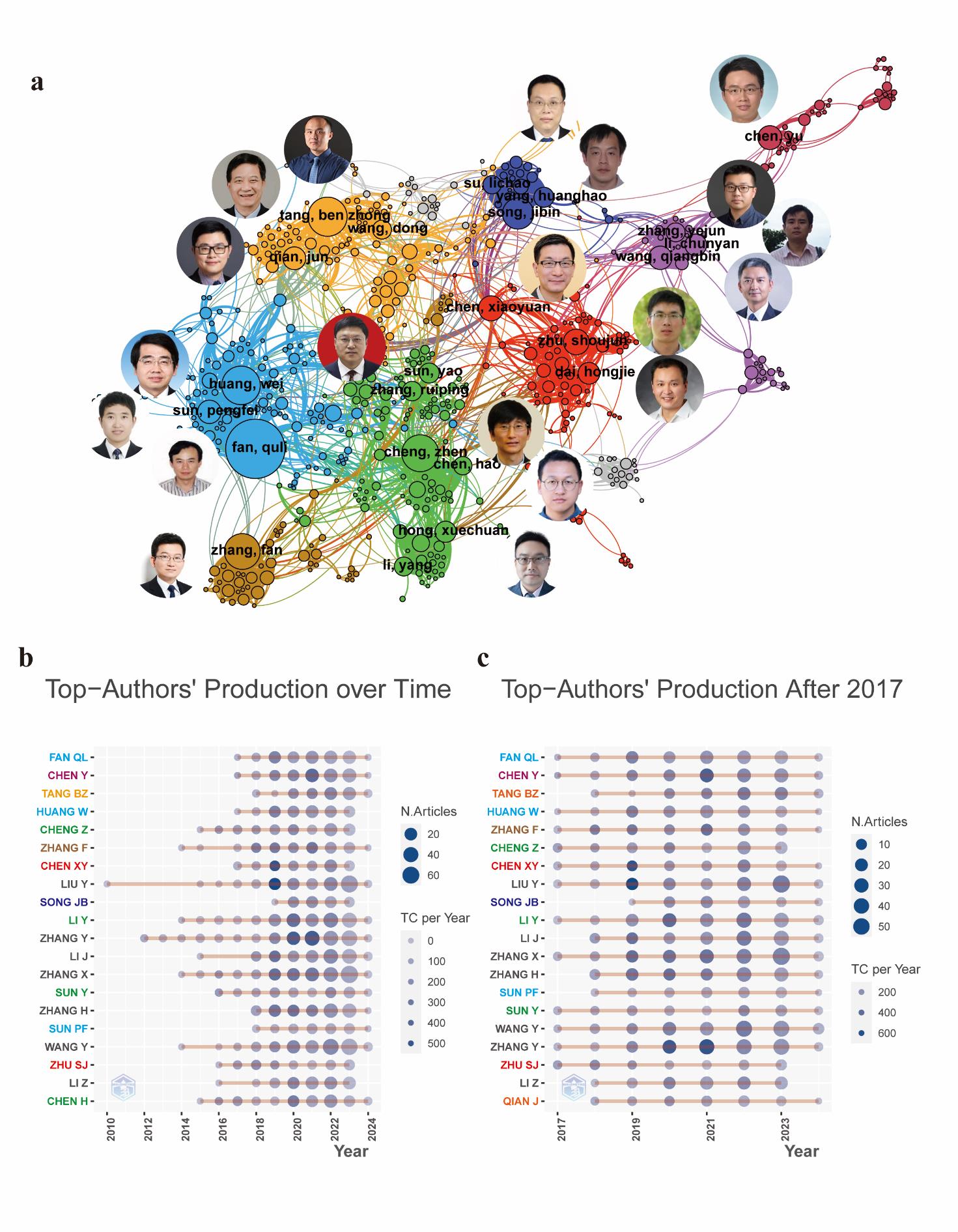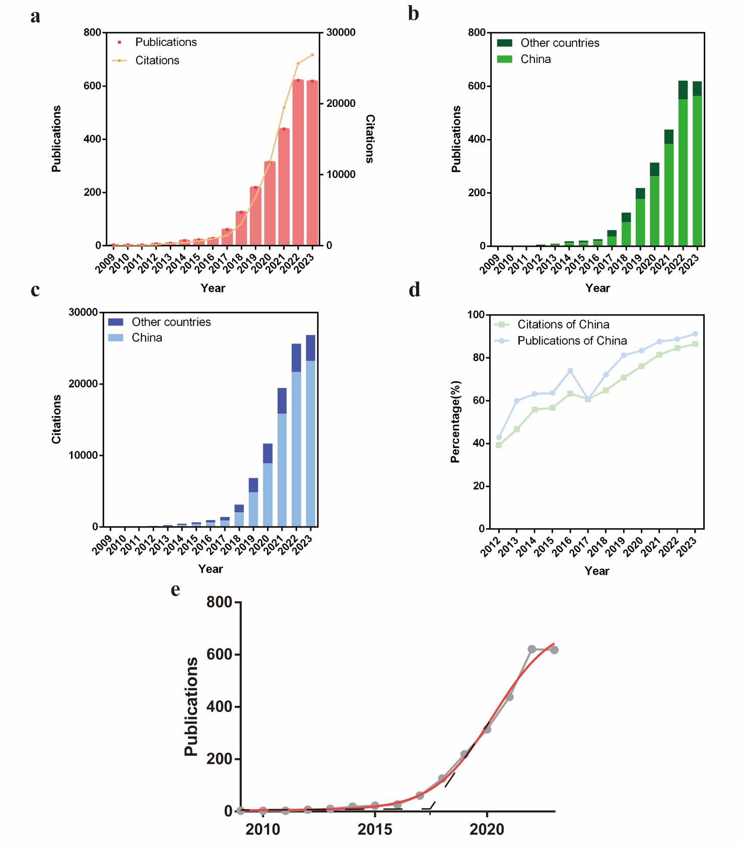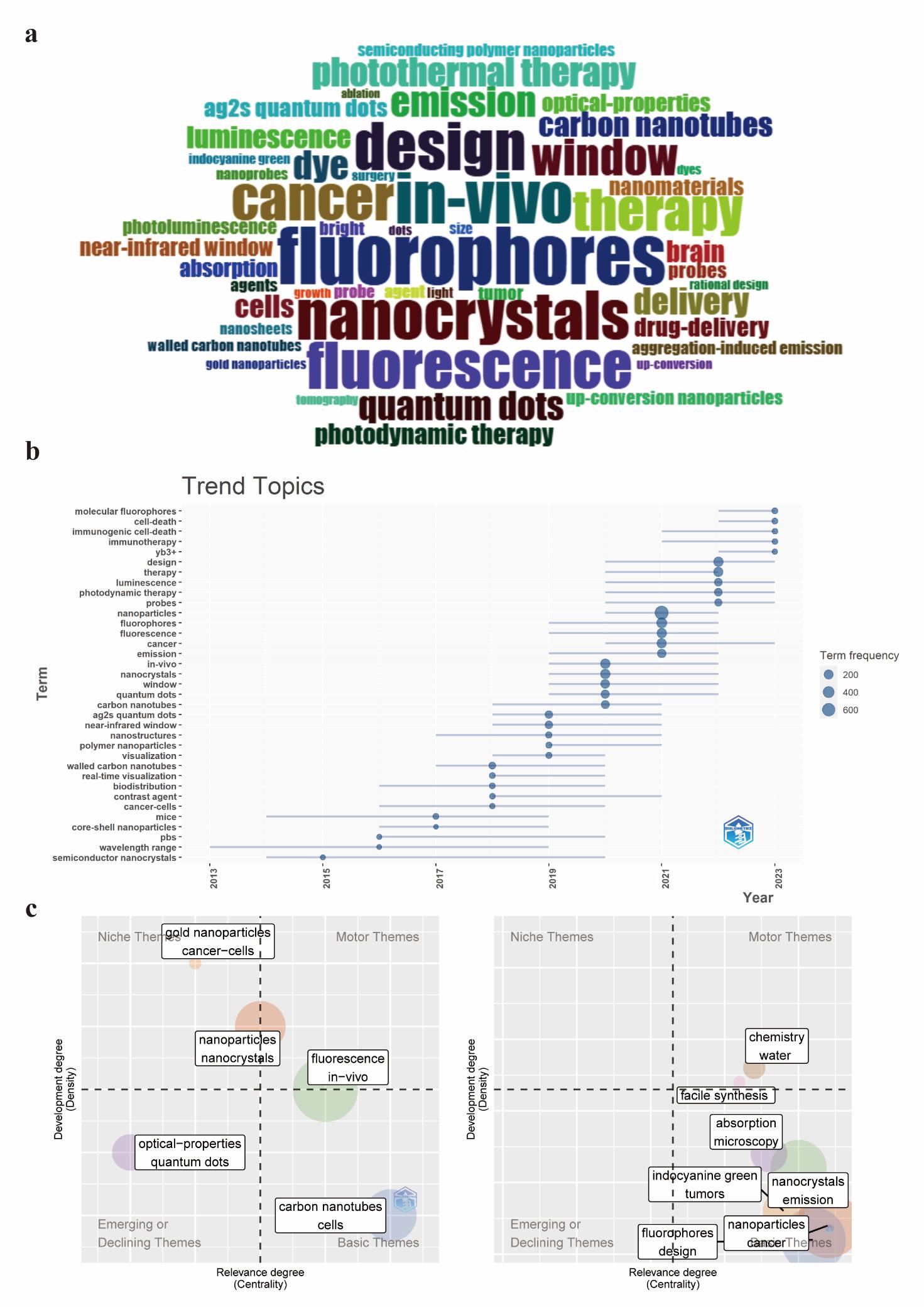 摘要:近红外二区(NIR-II,900~1 880 nm)克服了可见光(360~760 nm)和近红外一区(760~900 nm)成像的关键局限性,包括受限的穿透深度、低信噪比和高组织自发荧光,确立了其在体内深部组织生物成像中的关键作用。随着近红外二区光诊断和光疗研究在过去十年中呈指数级增长,文献计量分析对于绘制不断变化的格局和指导战略重点至关重要。我们系统地分析了来自Web of Science核心合集的2491篇与NIR-II相关的出版物(2009~2023),采用科学计量工具进行不同的分析目的:(a)VOSviewer、SCImago Graphica和Gephi用于合著和共现网络映射;(b)R bibliometrix包,用于跟踪领域演变和识别高影响力出版物/期刊。该搜索从来自54个国家的359种期刊中检索到2 491项研究。发表文章最多的国家是中国。中国机构推动了超过60%的出版物,斯坦福大学(美国)和南洋理工大学(新加坡)在研究质量方面排名前两位。国际合作日益频繁。范曲立、唐本忠、戴洪杰是该领域三位最具生产力的作家。关键词进化将“光动力疗法”和“免疫疗法”确定为未来的关键方向。我们总结了被引用最多的文献和NIR-II成像相关临床研究。本研究描绘了NIR-II的研究轨迹,突出了中国的领导地位、加强全球合作和跨学科融合。未来的工作应优先考虑新型NIR-II探针的开发,用于NIR-II成像和光动力/免疫治疗组合平台的临床转化。