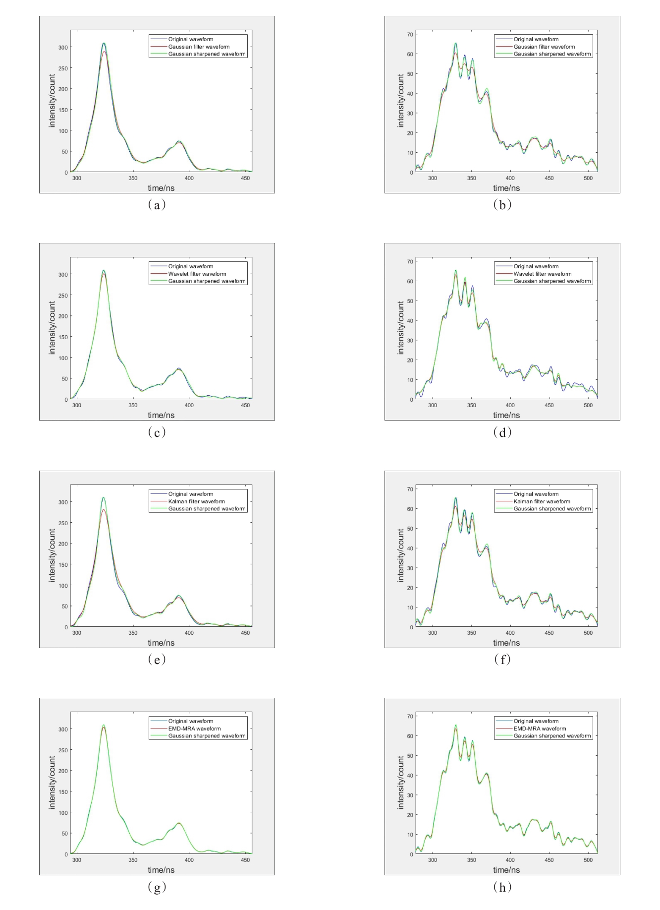 Abstract:Spaceborne full-waveform LiDAR, as an advanced remote sensing technology, has been widely applied in various fields due to its ability to record detailed terrain and vegetation information. However, the data from spaceborne full-waveform LiDAR can be affected by factors such as dark current, performance of photodetectors, the surrounding environment of the target being detected, and the background light during the acquisition process. These factors introduce significant noise into the original waveform signals, interfering with the extraction of effective echo information for target inversion analysis. To address the common problem of waveform amplitude reduction in existing classical filtering algorithms, this paper proposes an adaptive filtering compensation method for waveform amplitude. By utilizing the bat algorithm to optimize Gaussian sharpening operator parameters and convolving the Gaussian sharpening operator with the filtered waveform data, waveform compensation is achieved through adaptive iteration to ensure optimal compensation effects. This paper conducts experimental verification on GEDI (Global Ecosystem Dynamics Investigation) echo data, comparing the proposed method with various filtering algorithms. After filtering, the highest peak amplitude was reduced by an average of 9.0077 counts, while the difference between the highest peaks of the waveform after Gaussian sharpening compensation and the original waveform was only 0.0182 counts on average. Moreover, the average signal-to-noise ratio improved from 30.0235 dB to 33.2609 dB, representing a relative increase of 10.78%. The results indicate that this method, in conjunction with filtering methods, can remove noise while retaining more original waveform feature information. This provides more accurate data for further extraction of waveform information for geophysical parameter inversion and target classification and is applicable to a variety of filtering methods.