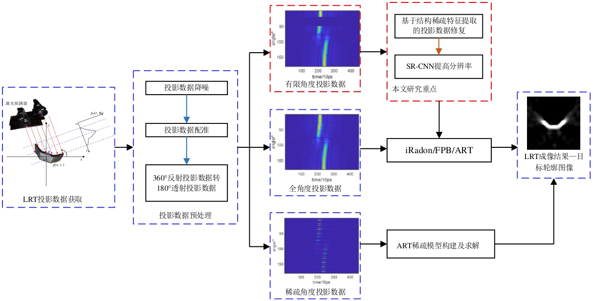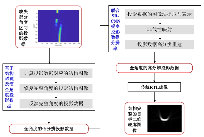 Abstract:Reflective tomography LiDAR (RTL) reconstructs target contours by acquiring laser echo projection data, but incomplete angular detection in practice often leads to insufficient projection data. To address this issue, the authors propose a target contour reconstruction method that combines the structural sparsity of projection data with a super-resolution convolutional neural network (SRCNN), based on the principles and technical implementation of RTL. This approach effectively resolves the failure of traditional algorithms when projection data suffers from severe angular deficiency. Different from conventional RTL imaging methods that directly incorporate sparse reconstruction models, the authors first recover full-angle projection data by integrating sparse constraints with SRCNN based on geometry prior of the projection data, followed by standard RTL imaging algorithms to achieve complete target contour reconstruction. To validate the effectiveness of the proposed method, the authors design laser echo projection simulations based on the facet model and conduct field experiments. The results demonstrate that the authors achieve high-quality target contour reconstruction under varying levels of projection data missing conditions.