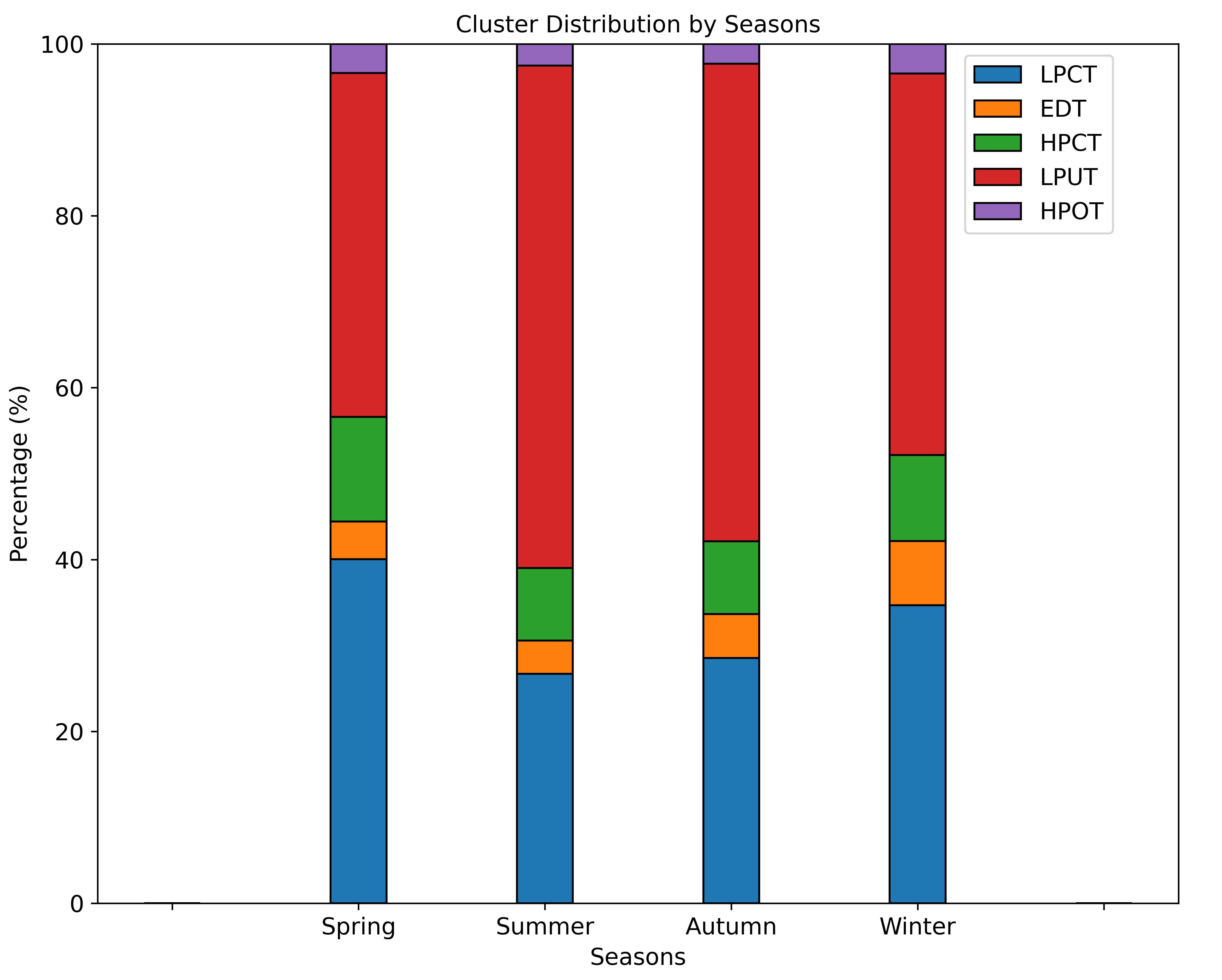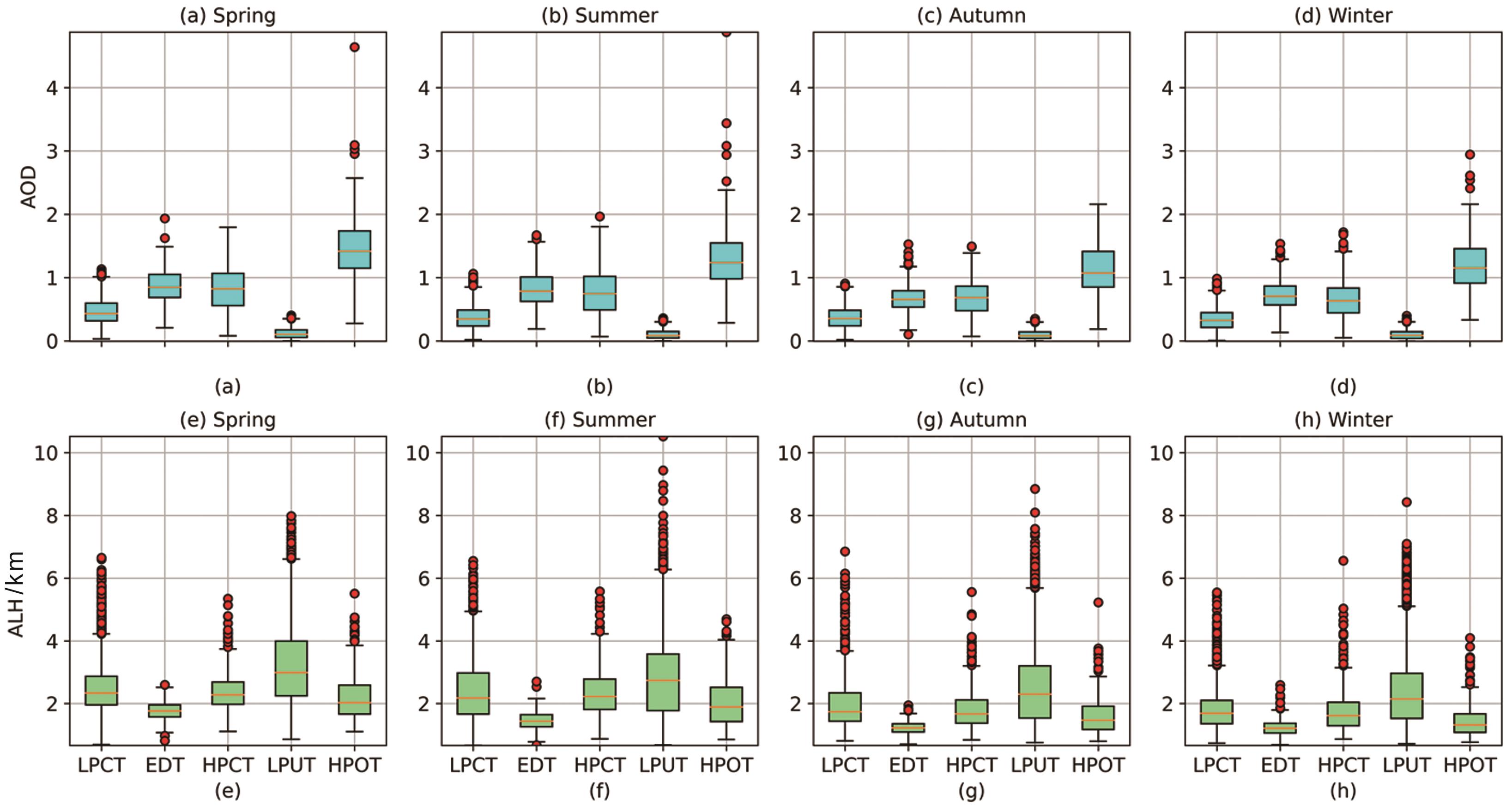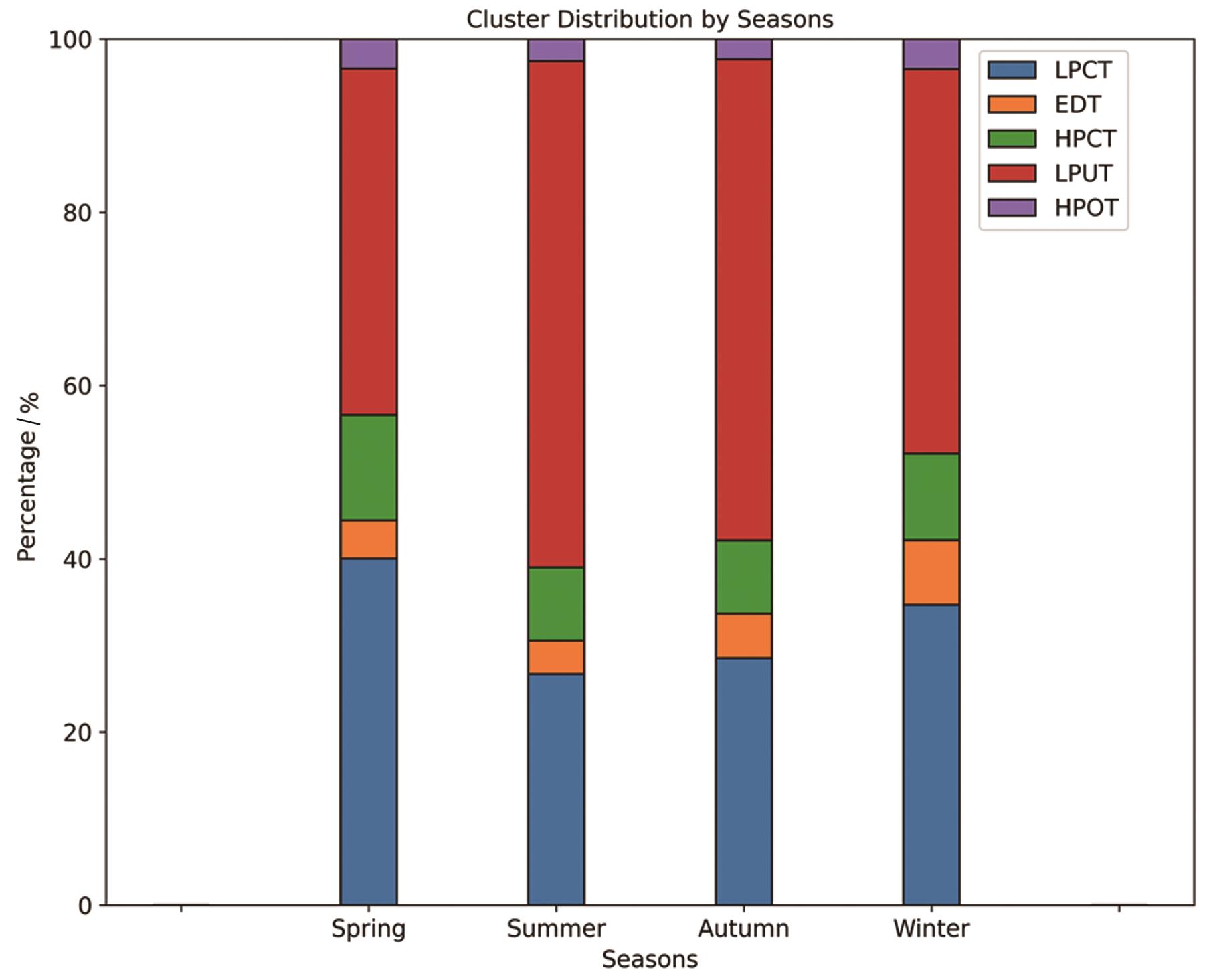 Abstract:The vertical distribution of aerosols plays a critical role in improving the accuracy of aerosol retrieval in satellite remote sensing due to its complexity and spatiotemporal variability. This study investigated the vertical characteristics of aerosols using unsupervised clustering methods, based on CALIOP (Cloud-Aerosol Lidar with Orthogonal Polarization) Level 3 aerosol profile data from 2010 to 2020. Three clustering algorithms—Gaussian Mixture Model (GMM), K-means, and spectral clustering—were evaluated using multiple performance metrics. The profiles of extinction coefficients were clustered into five representative types using the GMM algorithm: low-pollution composite type, high-pollution composite type, exponential decay type, low-pollution uniform type, and high-pollution oscillatory type. The seasonal and regional distributions of these profile types were further analyzed over the Tibetan Plateau, the Beijing-Tianjin-Hebei region, and the Yangtze River Delta. The results show that aerosol vertical profiles exhibit distinct seasonal and regional patterns. These findings provide a basis for improving aerosol profile parameterization and retrieval accuracy in remote sensing applications.