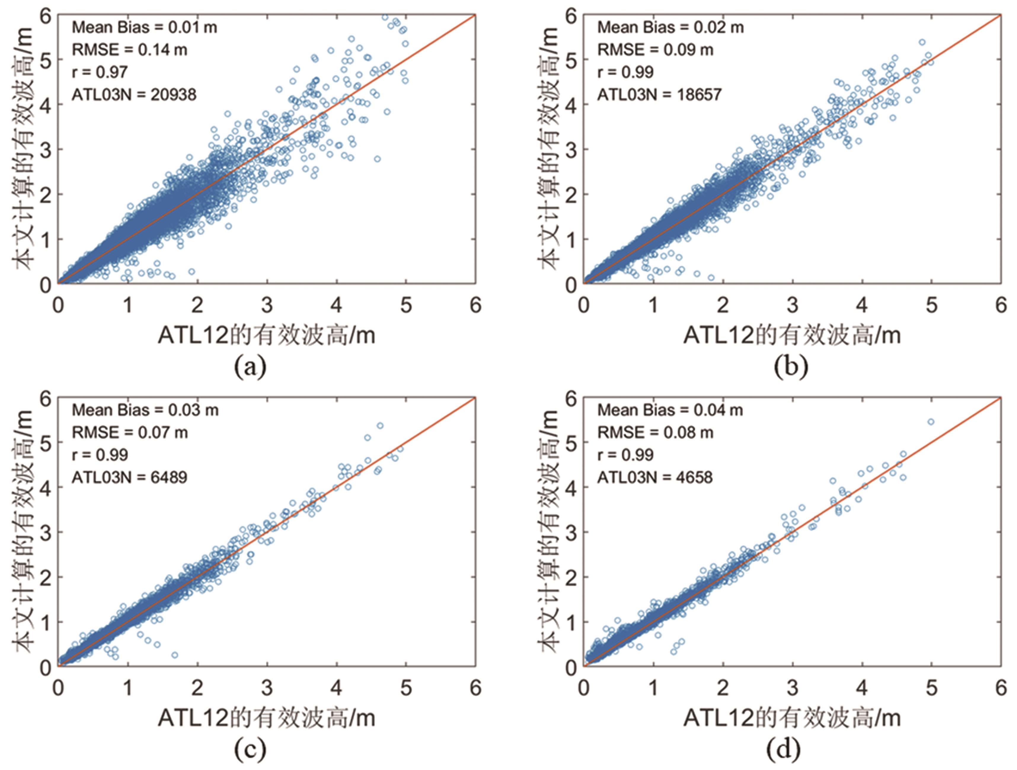 Abstract:In September 2018, NASA launched ICESat-2 (Ice, Cloud, and Land Elevation Satellite-2) which carried the unique spaceborne photon-counting lidar system ATLAS (Advanced Topographic Laser Altimeter System) in orbit so far. The lidar has the characteristics of multi-beams, high repetition rate, high ranging accuracy, and has great potential in obtaining high-precision and high-resolution wave parameters. In this paper, an optimized algorithm based on point density with adaptive thresholds is proposed to extract sea surface signal photons, and a method based on sea surface geometry shape to calculate the significant wave height value of sea waves, which proves that the significant wave height value that is consistent with the NASA marine product can be obtained using photon data with a length of 1 km, better than NASA’s 3-7 km wave height data resolution. Significant wave height data are used to generate a wave height space distribution with 0.2°×0.2° grids in the South China Sea, and to analyze the spatial distribution characteristics of significant wave height and the law of its variation with time. It shows that the significant wave height values in the sea areas around the Zhongsha Islands and the Luzon Strait are larger throughout the year, while the values in the Beibu Gulf, the Natuna Islands, the Sulu Sea, and the Celebes Sea are smaller. The changes of wave height and wind speed with time in the South China Sea are highly synchronous, indicating that the wave in this area is mainly driven by wind. The quantitative relationships between the significant wave height and wind speed in nearshore shallow water and offshore deep water are given respectively in combination with the wind speed data of ERA5, and prove that the significant wave height of the deep water is greater than the shallow water under the same wind speed. With the help of ICESat-2 photon-counting lidar, a higher resolution wave height space distribution can be obtained, especially accurate wave heights in nearshore shallow water areas, which can fill the space and time gaps of other observation methods of wave, that is helpful to the optimization of wave numerical model and the oceanographic research.
