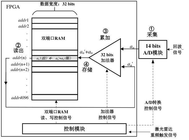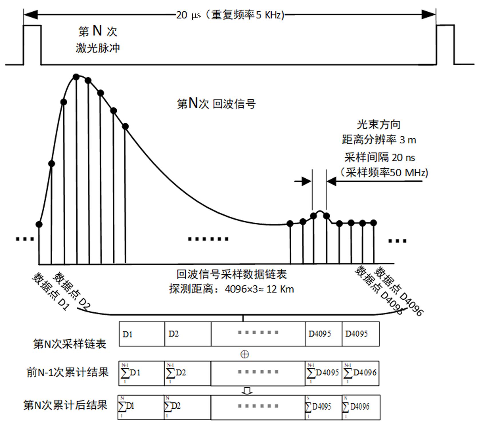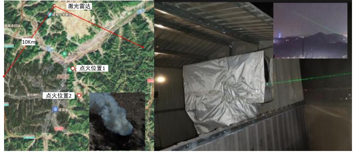 Abstract:In order to monitor forest fires, a high-repetition-rate polarization Lidar system was developed based on the light scattering and polarization characteristics of smoke particles generated during fires. The system consists of subsystems for laser emission, optical reception, echo signal acquisition and processing, and scanning control. To meet the demands for large-scale, high-resolution, and rapid forest fire detection, a high-power, high-repetition-rate laser was selected as the probing source, coupled with a high-resolution gimbal for precise scanning. With a Lidar repetition rate of 5 kHz, the system can perform patrol scanning a forest area with a 10 km radius in 48 minutes at an angular resolution of 1°. To address the challenges of echo signal acquisition and cumulative averaging during high-repetition-rate detection, a novel “readout-accumulation-storage” IP (Intellectual Property) architecture was designed, enabling efficient echo signal processing and improving the signal-to-noise ratio. The completed high-repetition-rate polarization Lidar underwent near-field and far-field simulation experiments, with detected signal peaks corresponding to fire locations. When deployed in Yan’an City, the Lidar successfully detected simulated fires at distances of 5.4 km and 8.1 km, validating the system’s effective detection capability.