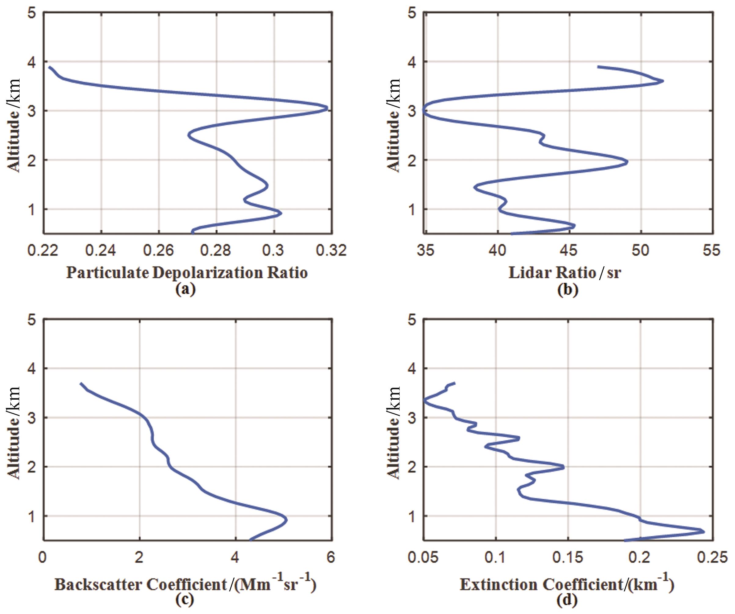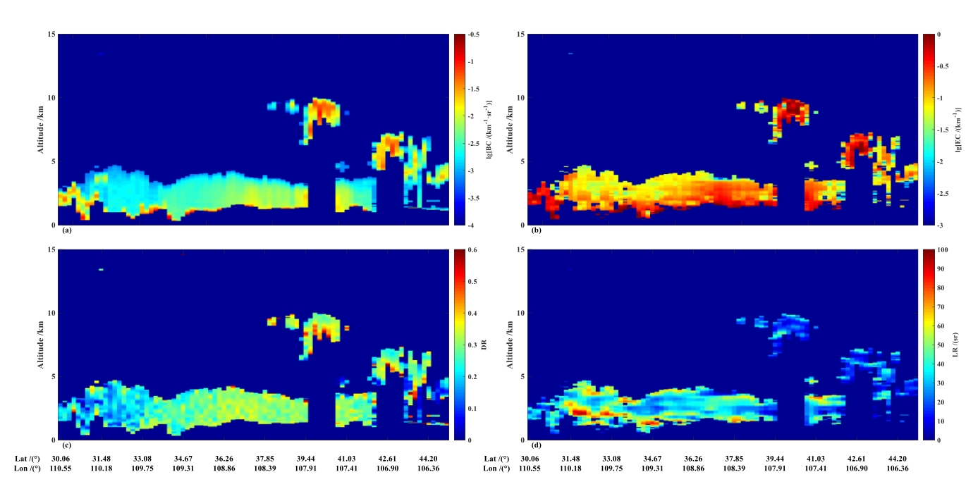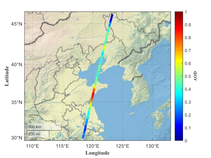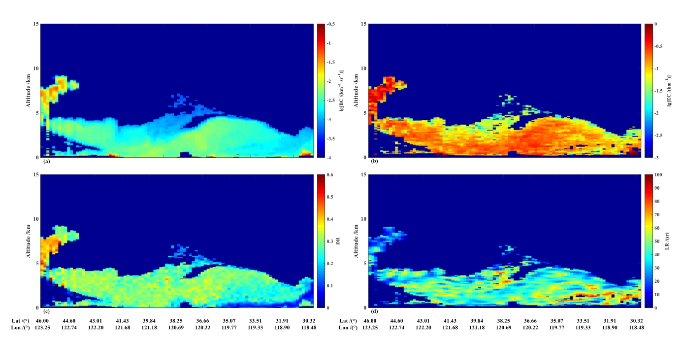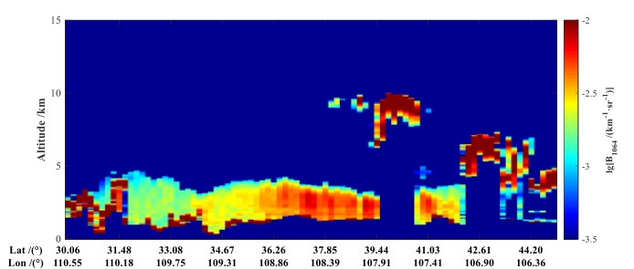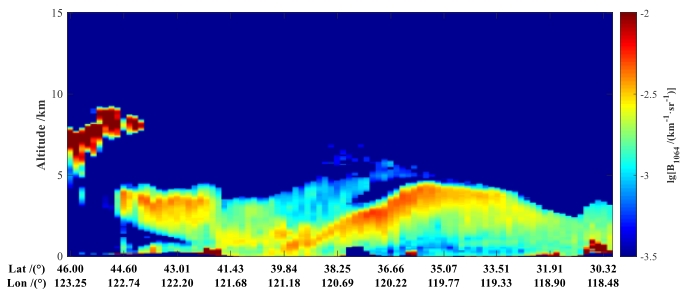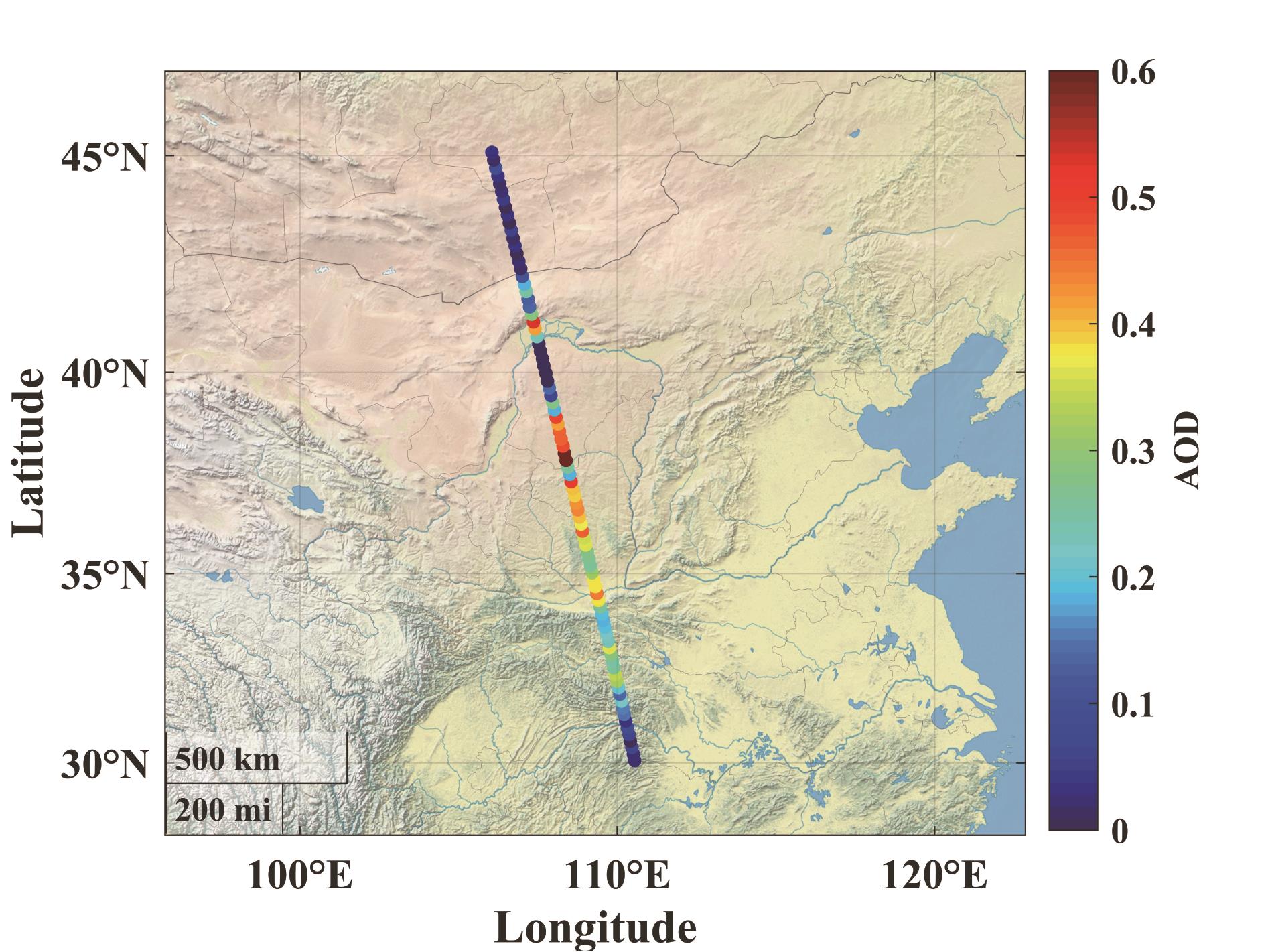 Abstract:In April 2022, the Atmospheric Environment Monitoring Satellite (DQ-1) was launched with its main payload Aerosol and Carbon Detection Lidar (ACDL). The ACDL is the first spaceborne high-spectral-resolution aerosol detection lidar with great performance in aerosol profile measurement. The accuracy of ACDL was quantified (R2 = 0.924) by comparing the aerosol optical depth (AOD) between ACDL and Aerosol Robotic Network (AERONET). In March 2025, frequent dust events occurred in northern China, generating substantial quantities of dust aerosols. The spatiotemporal distribution characteristics and optical properties of dust aerosols were analyzed. The results indicated that aerosols were mainly concentrated in the troposphere, with the depolarization ratio of 0.19–0.38 and the lidar ratio of 38–60 sr, exhibiting typical optical characteristics of dust. The vertical distribution demonstrates a maximum dust aerosol layer height reaching 5 km, while spatially extending over 1 600 km in horizontal dimension. This study confirms the observational advantages of high-spectral-resolution detection techniques from ACDL in complex aerosol environments, providing important data for atmosphere pollution research.