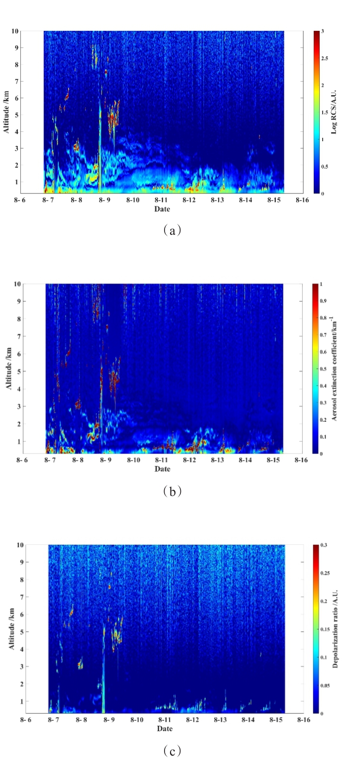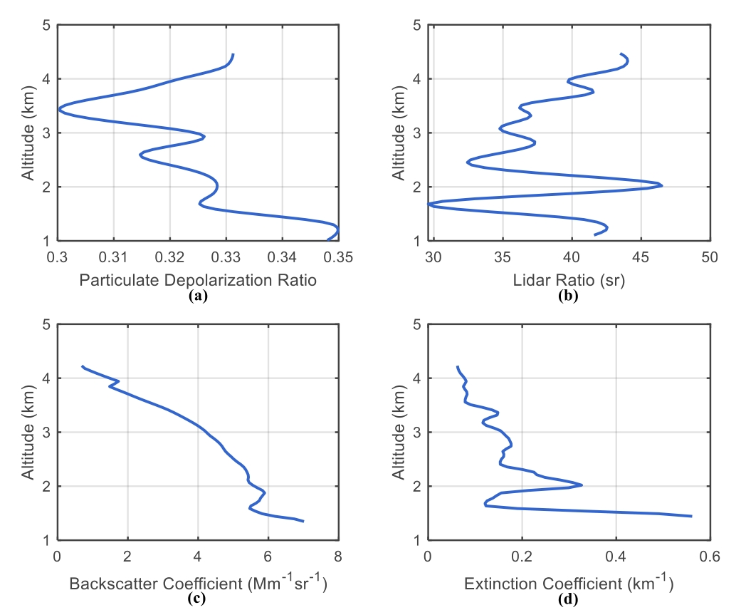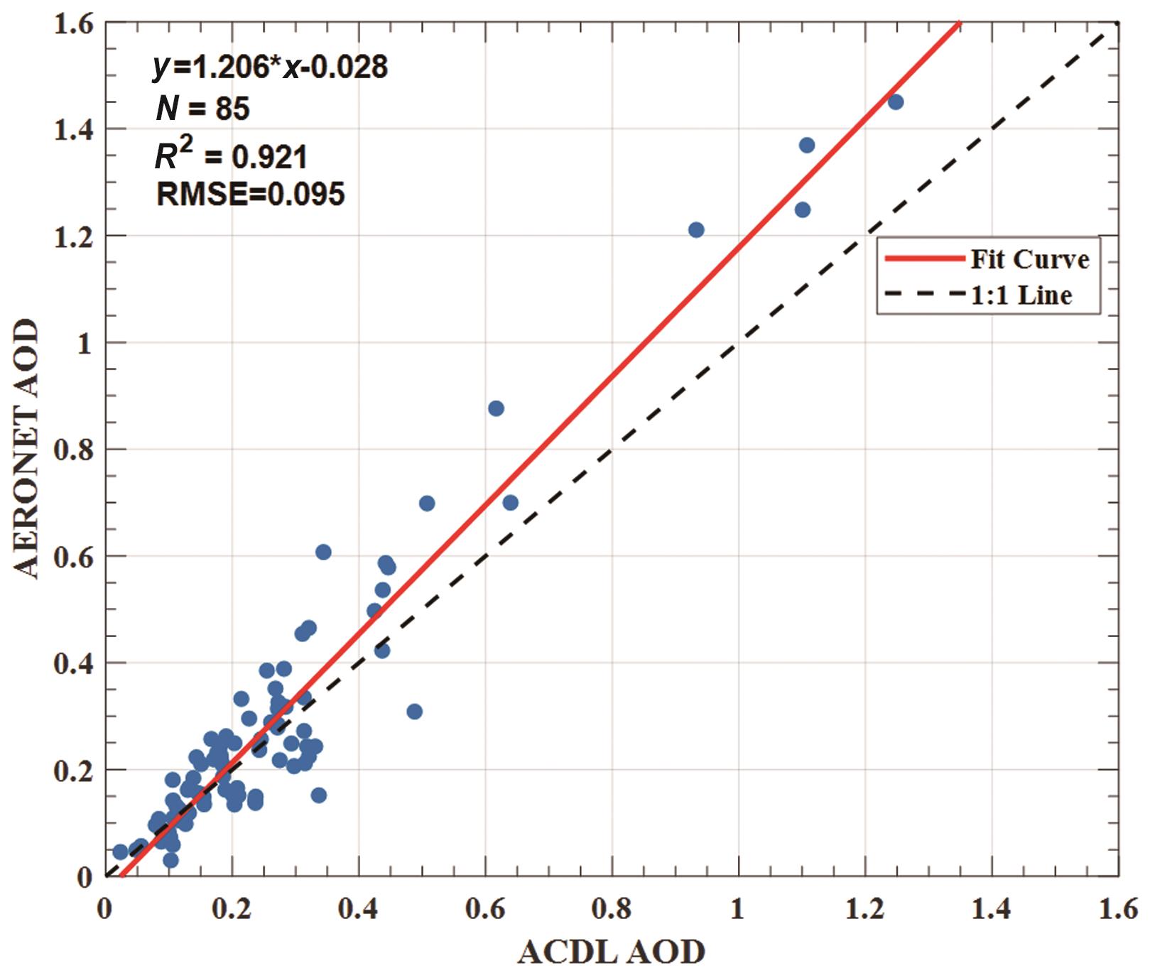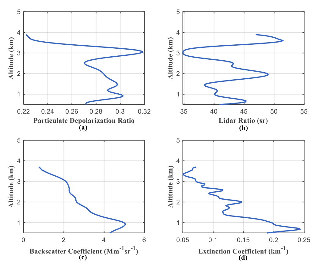 Abstract:In April 2022, the Atmospheric Environment Monitoring Satellite (DQ-1) was launched with its main payload Aerosol and Carbon Detection Lidar (ACDL). The ACDL is the first spaceborne high-spectral-resolution aerosol detection lidar with great performance in aerosol profile measurement. The accuracy of ACDL was quantified (R2 = 0.924) by comparing the aerosol optical depth (AOD) between ACDL and Aerosol Robotic Network (AERONET). In March 2025, frequent dust events occurred in northern China, generating substantial quantities of dust aerosols. The spatiotemporal distribution characteristics and optical properties of dust aerosols were analyzed. The results indicated that aerosols were mainly concentrated in the troposphere, with the depolarization ratio of 0.19–0.38 and the lidar ratio of 38–60 sr, exhibiting typical optical characteristics of dust. The vertical distribution demonstrates a maximum dust aerosol layer height reaching 5 km, while spatially extending over 1 600 km in horizontal dimension. This study confirms the observational advantages of high-spectral-resolution detection techniques from ACDL in complex aerosol environments, providing important data for atmosphere pollution research.