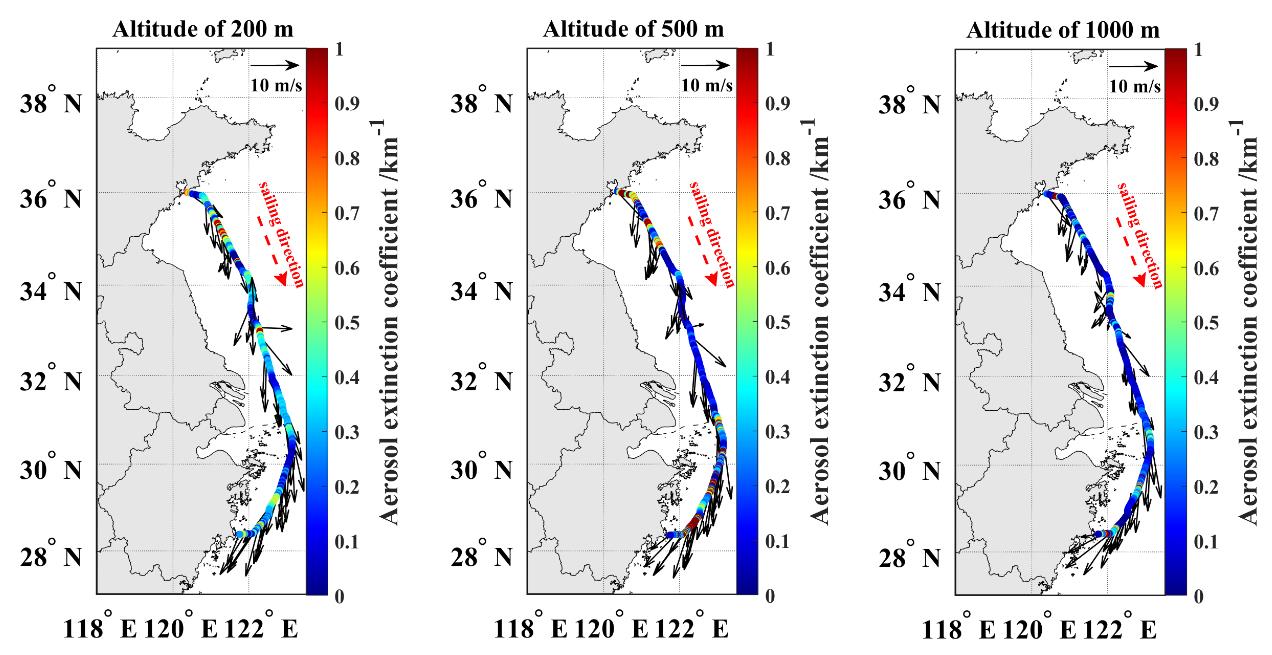 Abstract:Aerosol and wind field are critical parameters for studying the marine atmosphere, of which the high-precision measurements are of great significance. To achieve high spatiotemporal resolution observations of atmospheric aerosols and wind fields over the ocean, a shipborne multi-parameter atmospheric lidar has been developed. A detailed description of the structural design, detection principles, technical specifications, and retrieval methodology of the lidar system has been presented first. The lidar system was then calibrated by atmospheric molecular Rayleigh tests and wind field observing comparison tests, for verifying its detection accuracy and characteristics. Towards real applications, the system was deployed aboard the “Luqing Yujiao 16” research vessel during August 2024 for mobile observations in the Yellow and East China Seas. During the aboard experiments, the aerosol optical parameters within the height range of 0-10 km and wind field information of 0-5 km were obtained online. The results show that the aerosol concentrations over the ocean vary significantly in different areas, and the lidar system even captures low-level aerosol layers and low-level clouds. Furthermore, the atmospheric wind speed over the ocean remains lower than 20 m·s-1 at low heights; meanwhile, the height of the boundary layer fluctuates near 1 km; when comparing the time-resolved profiles at typical heights, the aerosol optical parameters, wind speed and wind direction exhibit distinct temporal evolution patterns among different height layers such as 200 m, 500 m and 1 000 m. It is demonstrated that the shipborne multi-parameter atmospheric lidar can perform as an effective tool for accurate, continuous, and online monitoring of the critical atmospheric parameters over the ocean by combining with advanced marine platforms.