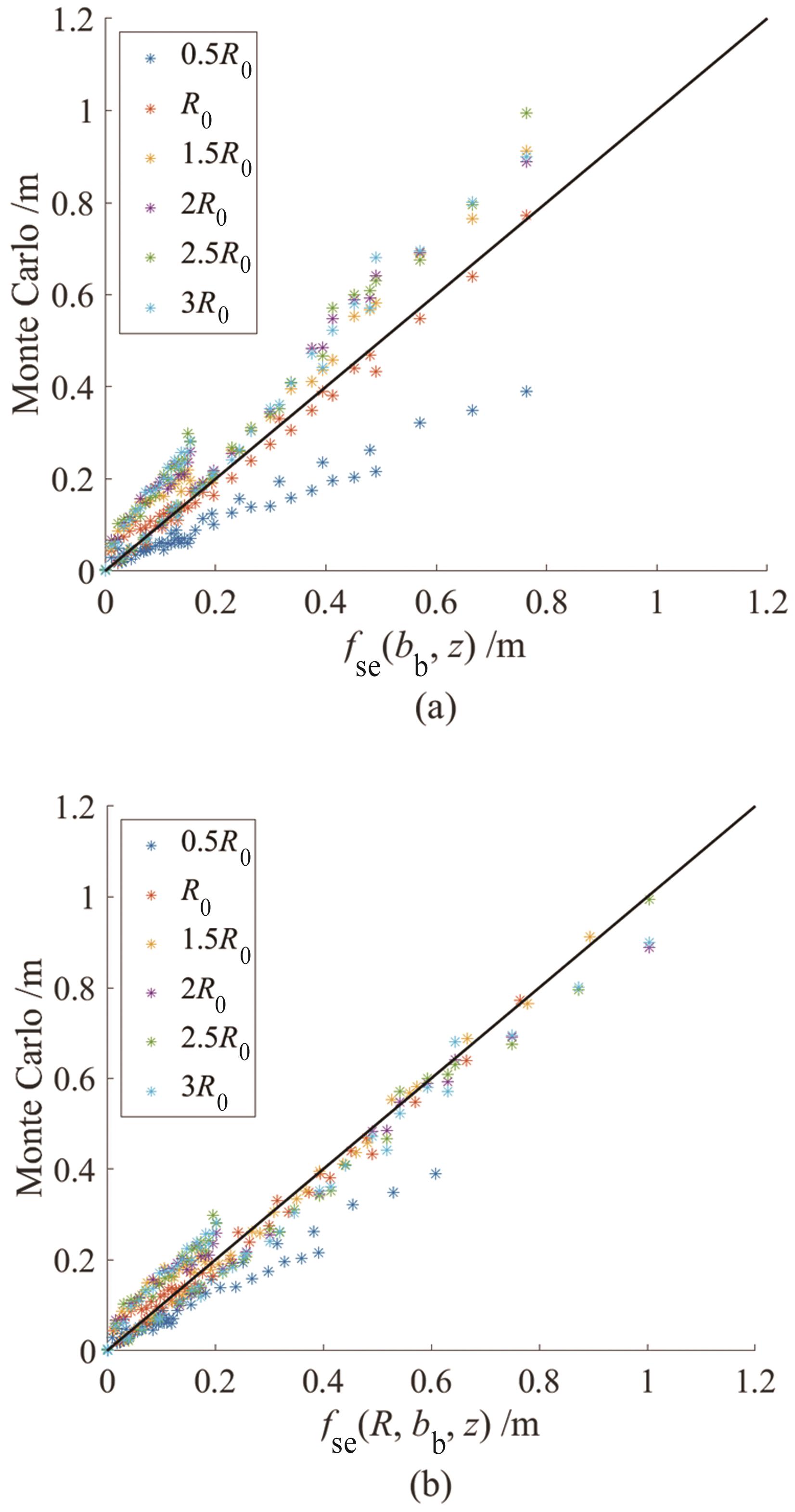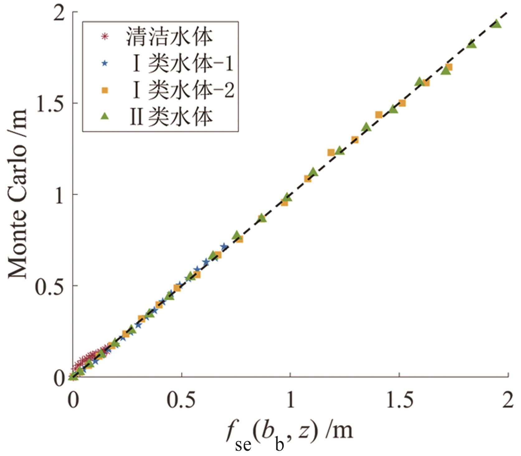 Abstract:The forward scattering error in water bodies is one of the primary error sources in spaceborne laser bathymetry, with individual errors potentially exceeding the depth accuracy requirements of hydrographic surveying standards. However, traditional scattering correction methods developed based on waveform information cannot be applied to the discrete photons from photon-counting lidars. In this study, a Monte Carlo simulation is used to estimate the forward scattering errors in the water column for spaceborne photon-counting lidars and an empirical formula is derived for its rapid error correction. The quantitative analysis on this correction method demonstrates that the rapid scattering error correction is practicable and reliable using the initially corrected bathymetry data of ICESat-2 and the MODIS global water backscattering coefficient at 531 nm as inputs. Further sensitivity analysis indicates that the method performance mainly depends on the uncertainty of water backscattering coefficients. With the backscattering coefficients error constrained within 20%, the empirical formula reduces the scattering error residuals to less than 0.45% of the water depth. Under four typical water conditions, the empirical formula demonstrates an average 72% reduction in water forward scattering errors, effectively eliminating the majority of scattering-induced inaccuracies. The analysis of system parameters indicates that the derived ICESat-2 correction formula can be extended to other spaceborne photon-counting bathymetric lidars through considering the receiver field-of-view radius.