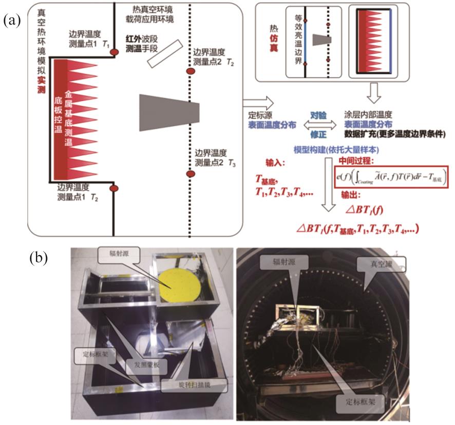 Abstract:Aiming at the application requirements of brightness temperature calibration of the hot calibration target of spaceborne microwave radiometer, and based on the temperature gradient characteristics of the absorbing coating of the calibration target and the mechanism of brightness temperature deviation, combined with practical temperature measurement and experimental methodology, a brightness temperature metrological calibration technology solution applicable for in-orbit use is studied. Given the current background of high emissivity design and determination technology of the calibration target being basically perfected, this work focuses on summarizing the methods for determining the temperature gradient characteristics of the calibration target coating. The goal is to construct an in-orbit available brightness temperature calibration method that uses multiple parameters, such as the measurable temperature values of the metal inner core of the calibration target and that near the radiation aperture of the calibration target. Based on feasible electromagnetic simulation technology, thermal simulation technology, platinum resistance and infrared temperature measurement techniques, the paper preliminarily summarizes the implementation path of the brightness temperature calibration technology system for space-borne calibration targets. This involves first constructing a basic brightness temperature calibration model considering uniform background brightness temperature and improving the mapping relationship from the inner core temperature of the calibration target and the equivalent background brightness temperature to the longitudinal temperature gradient of the coating. Subsequently, an application model for brightness temperature calibration considering the installation environment is constructed, improving the mapping relationship from the temperature measurements of the inner core and that of the radiation aperture area of calibration target to the overall brightness temperature deviation. Finally, the validation and application of the brightness temperature calibration model are discussed. The research on brightness temperature calibration of space-borne calibration source is an important technical basis and reference for further improving the accuracy of brightness temperature of calibration target and even developing space microwave radiation measurement standards.