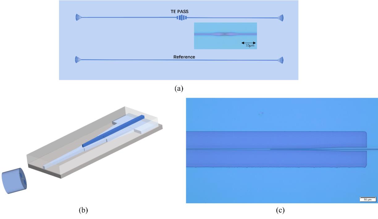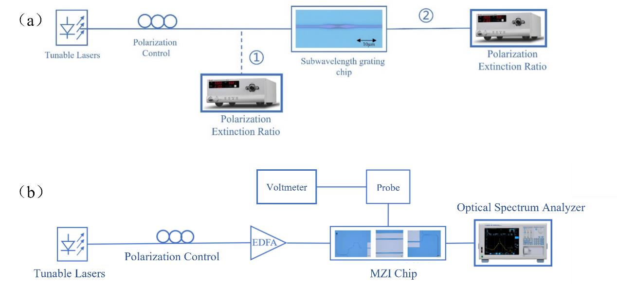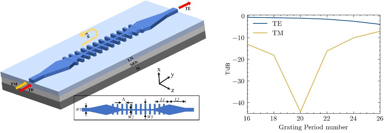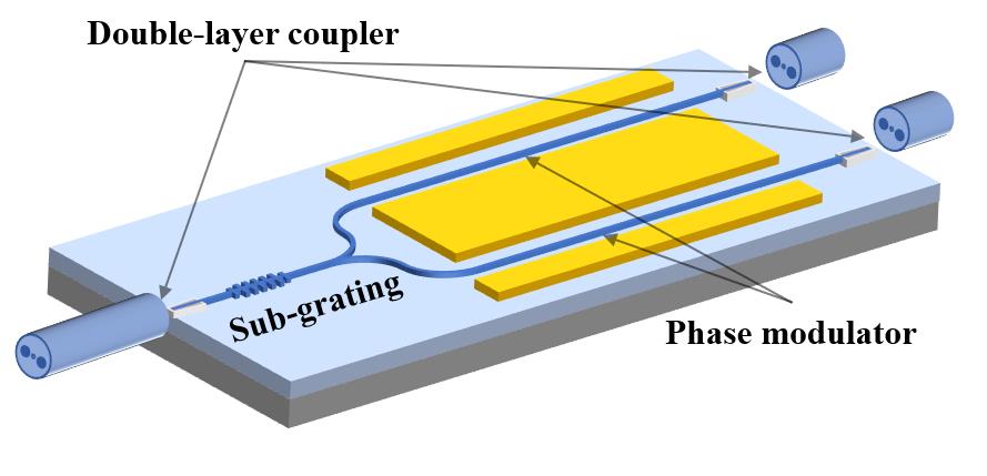 Abstract:This paper introduces an innovative Multifunction Integrated Optic Circuit (MIOC) design utilizing thin-film lithium niobate, surpassing traditional bulk waveguide-based MIOCs in terms of size, half-wave voltage requirements, and integration capabilities. By implementing a sub-wavelength grating structure, we achieve a Polarization Extinction Ratio (PER) exceeding 29 dB. Furthermore, our electrode design facilitates a voltage-length product (VπL) below 2 V·cm, while a double-tapered coupling structure significantly reduces insertion loss. This advancement provides a pivotal direction for the miniaturization and integration of optical gyroscopes, marking a substantial contribution to the field.