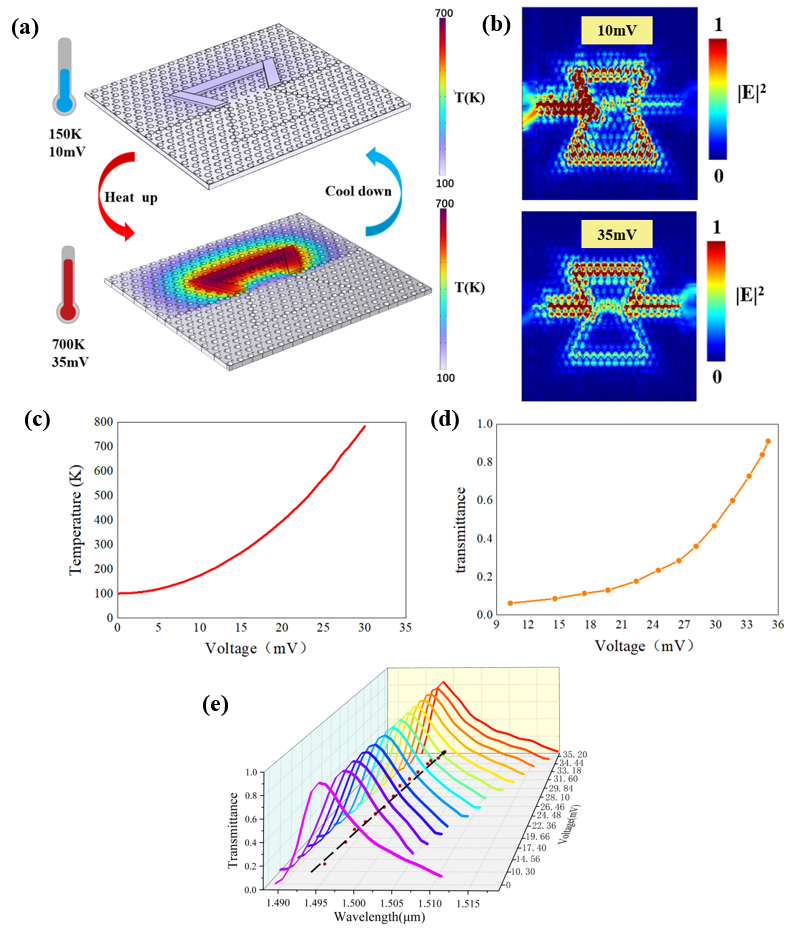 Thermo-optic modulators are key components of optical communication systems, and their performance directly affects system efficiency. With the development of silicon optothermonic technology, silicon thermo-optic modulators have been widely used in optothermonic chips. Conventional silicon optical modulators are large in size and have high losses. In recent years, researchers have proposed to use the slow light effect of photonic crystals to reduce the footprint of modulators. Related studies have shown that these devices have advantages, such as small size and low driving voltage. However, the optical transmittance of thermo-optic modulators based on photonic crystals is still affected by defects caused by fabrication errors. Valley photonic crystal optical waveguides can achieve scattering-immune high-efficiency unidirectional transmission, providing a new venue for realizing high-performance photonic devices. In this paper, a new silicon thermo-optic modulator based on a valley photonic crystal Mach-Zehnder interferometer (MZI) is designed. The electrical heating mechanism is introduced on one of the waveguides of the MZI. The thermo-optic effect modulates the refractive index to achieve precise phase modulation of the transmitted light. The thermo-optic modulator device has a small footprint of only 9.26 μm × 7.99 μm, which can achieve a high forward transmittance of 0.91, an insertion loss of 0.41 dB, and a modulation contrast of 11.75 dB. It can also be experimentally fabricated using complementary metal oxide semiconductor (CMOS) technology, so it will have broad application prospects. This modulation principle can be widely used in designing different thermo-optic modulation devices.