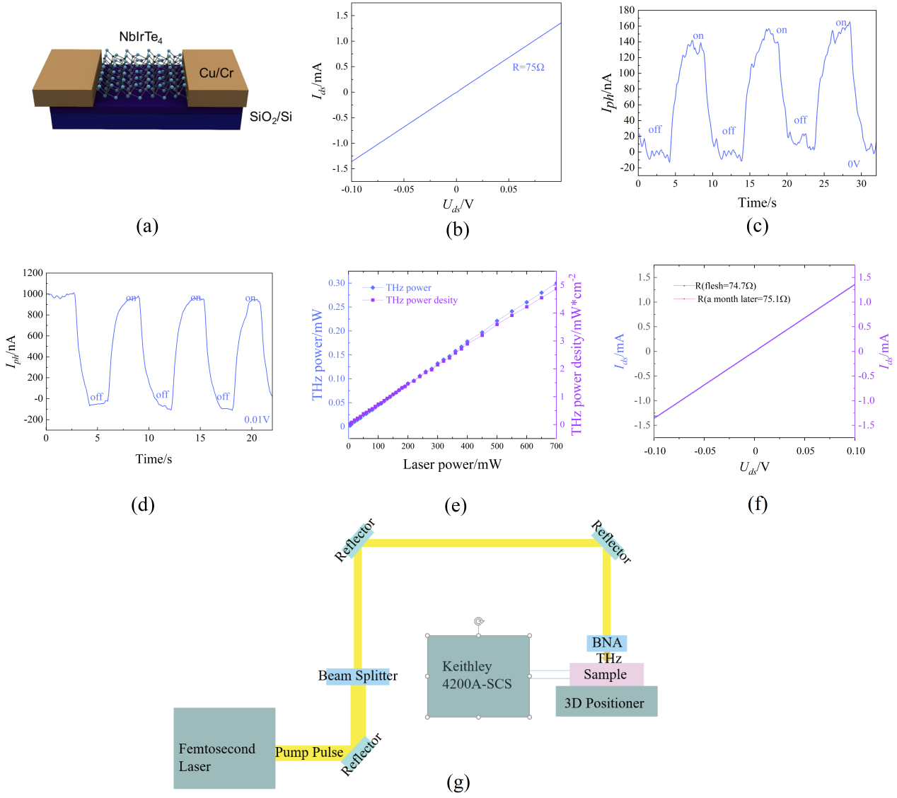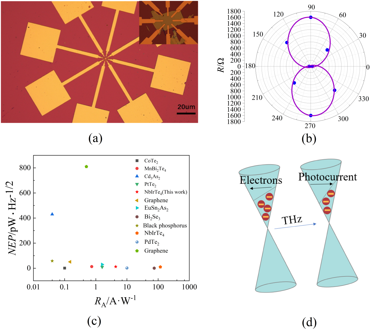 Topological semimetal materials have garnered significant interest due to their distinctive electronic structures and unique properties. They serve as a foundation for exploring various physical phenomena including the anomalous Hall effect, topological phase transitions and negative magnetoresistance, while also offering potential solutions to the "THz Gap." This study focuses on the type-II Weyl semimetal tetratellurium iridium niobium (NbIrTe4) terahertz detector which exhibits a responsivity of 4.36 A/W, a noise equivalent power of 12.34 pW/Hz1/2 and an anisotropic resistance ratio of 32 at room temperature. This research paves the way for achieving high-performance terahertz detection at room temperature and serves as a reference for investigating the Weyl semimetal.