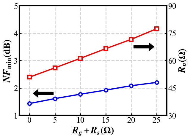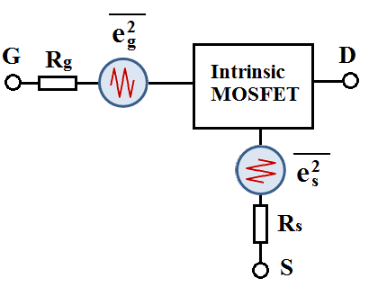 This paper investigates the impact of extrinsic resistance on the noise performance of deep submicron MOSFETs (metal-oxide-semiconductor field-effect-transistor) using the noise correlation matrix method. Analytical closed-form expressions for calculating the four noise parameters are derived based on the small-signal and noise-equivalent circuit models. The results show strong agreement between simulated and experimental data for MOSFETs with a gate length of 40 nm and dimensions of 4×5 μm (number of gate fingers × unit gate width.