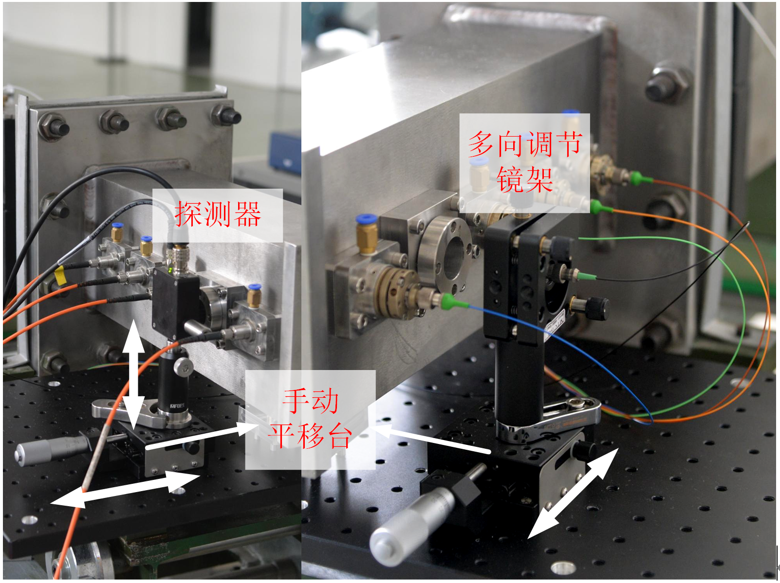 A high-performance oxygen detection system enables real-time online monitoring of critical parameters such as oxygen concentration and flow velocity inside the engine, thereby ensuring optimal operational performance. In flow field testing for engines such as scramjets and aircraft engines, the complex environment—characterized by high temperatures, high pressures, high velocities, and limited measurement space—poses significant challenges to high-performance flow field diagnostics. To address these challenges, an oxygen concentration measurement device based on cavity-enhanced absorption spectroscopy (CEAS) was developed. The system incorporates an embedded optical probe structure and is equipped with multi-directional alignment stages at both the transmitter and receiver ends, enabling straightforward optical path adjustment and alignment for practical engineering applications. Experimental results indicate that, under static conditions, the system measured an oxygen concentration of (20.846±0.97%), showing good agreement with the reference value. In shock tube experiments, although vibrations and airflow disturbances during operation affected measurement accuracy, the system successfully captured three distinct states: before the arrival of the incident shock wave, after the incident shock wave passed but before the reflected shock wave arrived, and after the reflected shock wave passed. The measured trends in oxygen concentration align well with theoretical predictions.