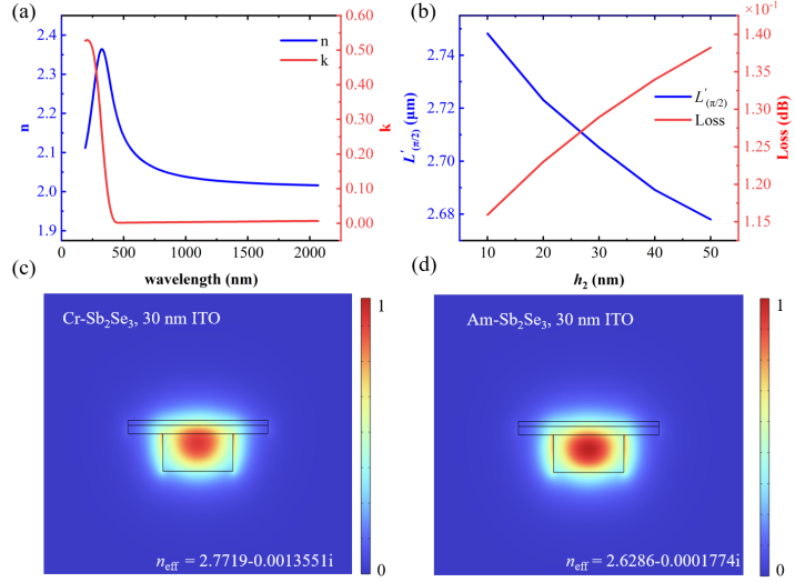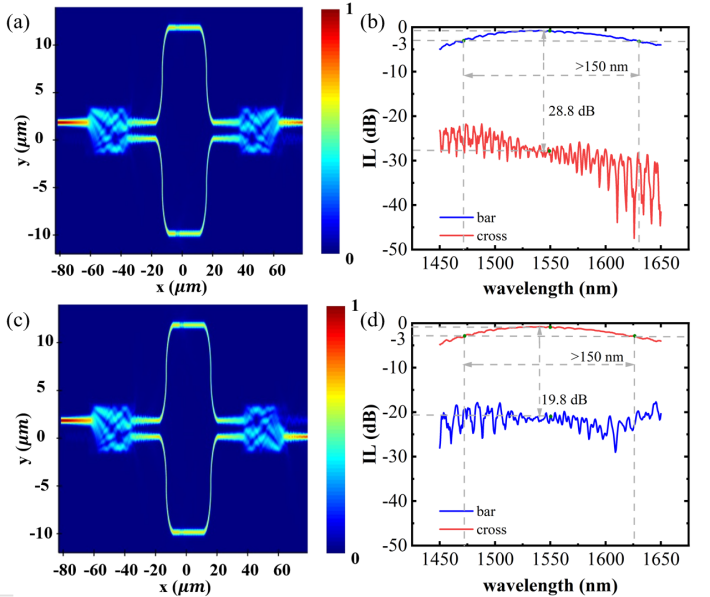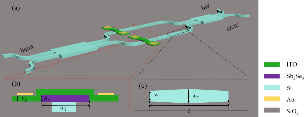 In this paper, we present a broadband, high-extinction-ratio, nonvolatile 2×2 Mach-Zehnder interferometer (MZI) optical switch based on the phase change material Sb2Se3. The insertion loss (IL) is 0.84 dB and the extinction ratio (ER) reaches 28.8 dB at the wavelength of 1 550 nm. The 3 dB bandwidth is greater than 150 nm. Within the 3 dB bandwidth, the ER is greater than 20.3 dB and 16.3 dB at bar and cross states, respectively. The power consumption for crystallization and amorphization of Sb2Se3 is 105.86 nJ and 49 nJ, respectively. The switch holds significant promise for optical interconnects and optical computing applications.