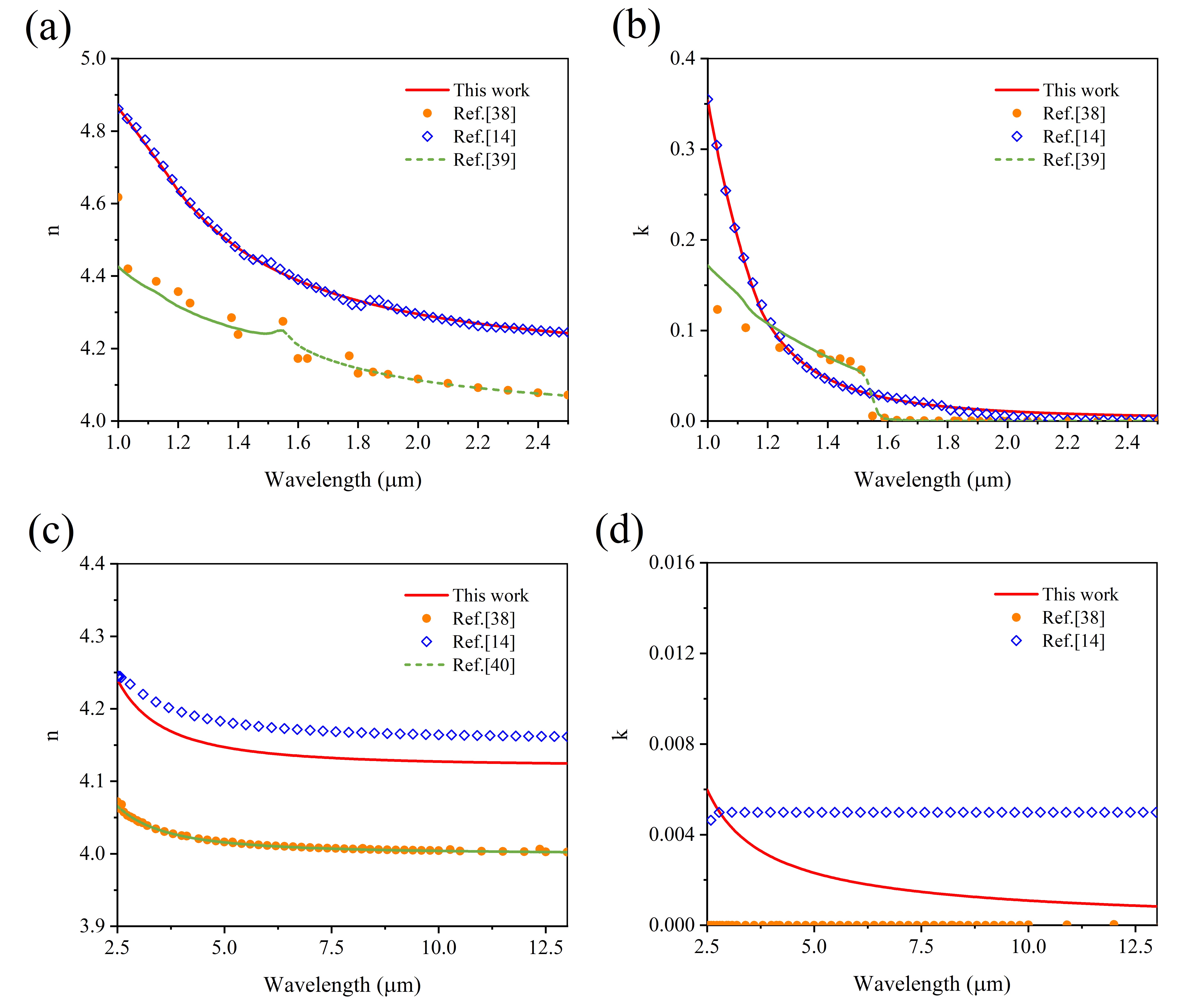 GaSb and InAs demonstrate significant potential photoelectric applications in mid-wave infrared (3-5 μm) and long-wave infrared (8-12 μm) spectral regions. However, their weak optical absorption properties hinder accurate determination of absorption coefficients via conventional transmission spectroscopy due to multi-pass transmission effects. This study introduces a combined reflection-transmission analysis method based on Fourier-transform infrared spectroscopy (FTIR), achieving enhancement in measurement accuracy within the low-absorption regime (α<10 cm?1). For samples with doping concentrations of ND=2.46×1016 cm-3 (InAs) and ND=8.76×1016 cm-3 (GaSb), the analysis reveals that free carrier absorption in the 8-18 μm range is predominantly governed by acoustic phonon scattering and ionized impurity scattering. Notably, GaSb exhibits significantly enhanced scattering intensity compared to InAs, with a 10-fold increase in ionized impurity scattering coefficient and a 450-fold amplification in acoustic phonon scattering coefficient. The developed methodology provides a technical framework for determining absorption coefficients in low-absorption materials.