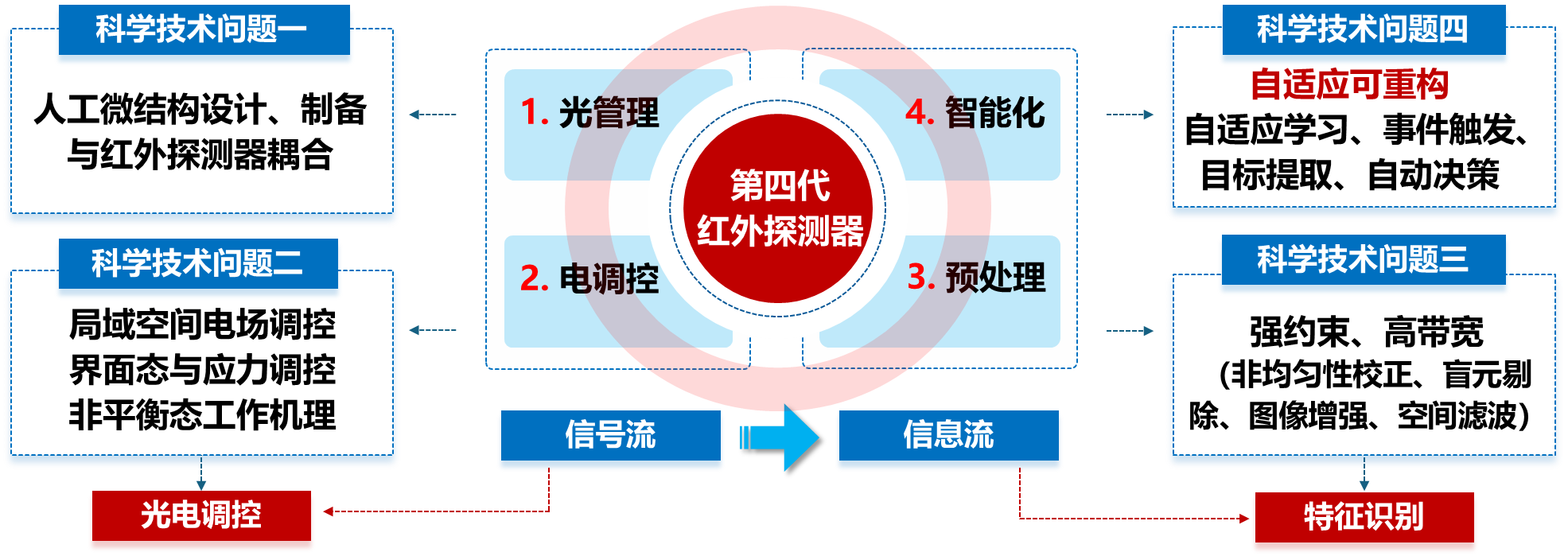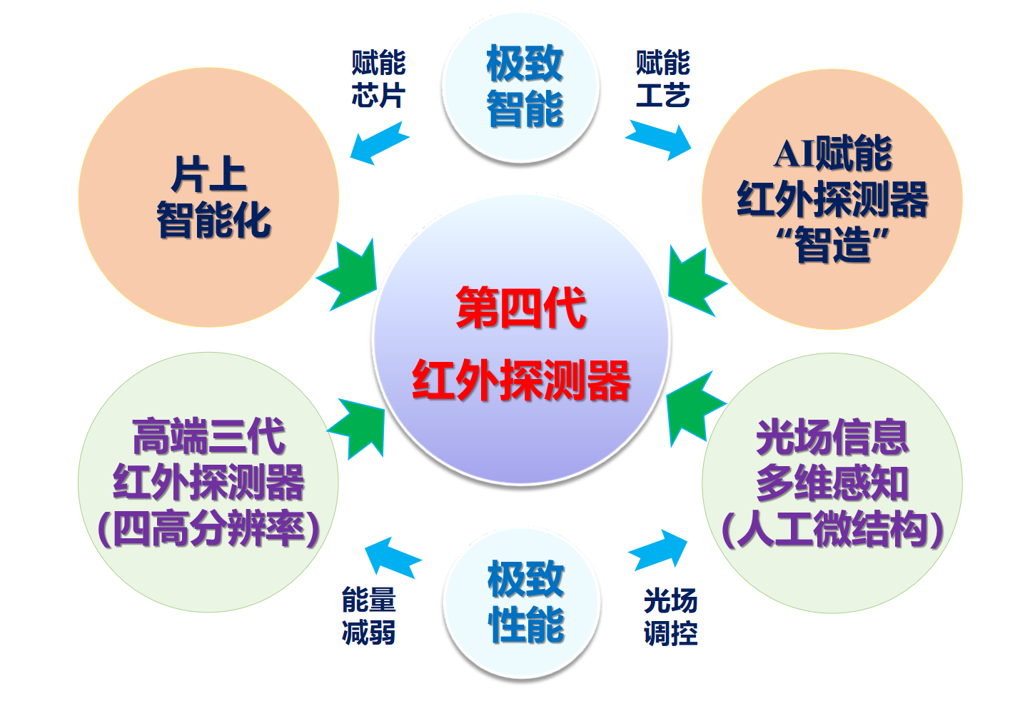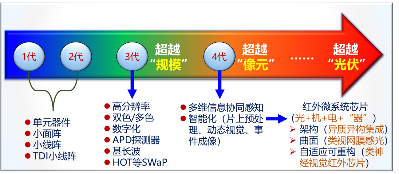 Infrared detectors have been widely applied in aerospace reconnaissance, electro-optical countermeasures, and space science. Currently, it is undergoing a critical transition from the "full development of the third generation" to the "exploration of the fourth generation." Based on the pressing demands of current infrared detection applications, the preliminary definition and development considerations of the fourth-generation infrared detector was discussed. First, the developmental trajectory of infrared detectors was outlined. The evolution trend of the fourth-generation infrared detectors was explored from the perspectives of function integration, disciplinary advancement, and technology progression, and an initial definition for fourth-generation infrared detectors was proposed. Secondly, the preliminary contemplation on pivotal technological advancements for fourth-generation infrared detectors, encompassing the exploration of extreme detection performance, multidimensional light field information sensing, on-chip intelligence, and infrared microsystem chips, was delineated. Finally, an intelligent manufacturing ecosystem for infrared detectors was envisaged, which facilitates the transition of fourth-generation infrared detectors from conceptualization to practical application.